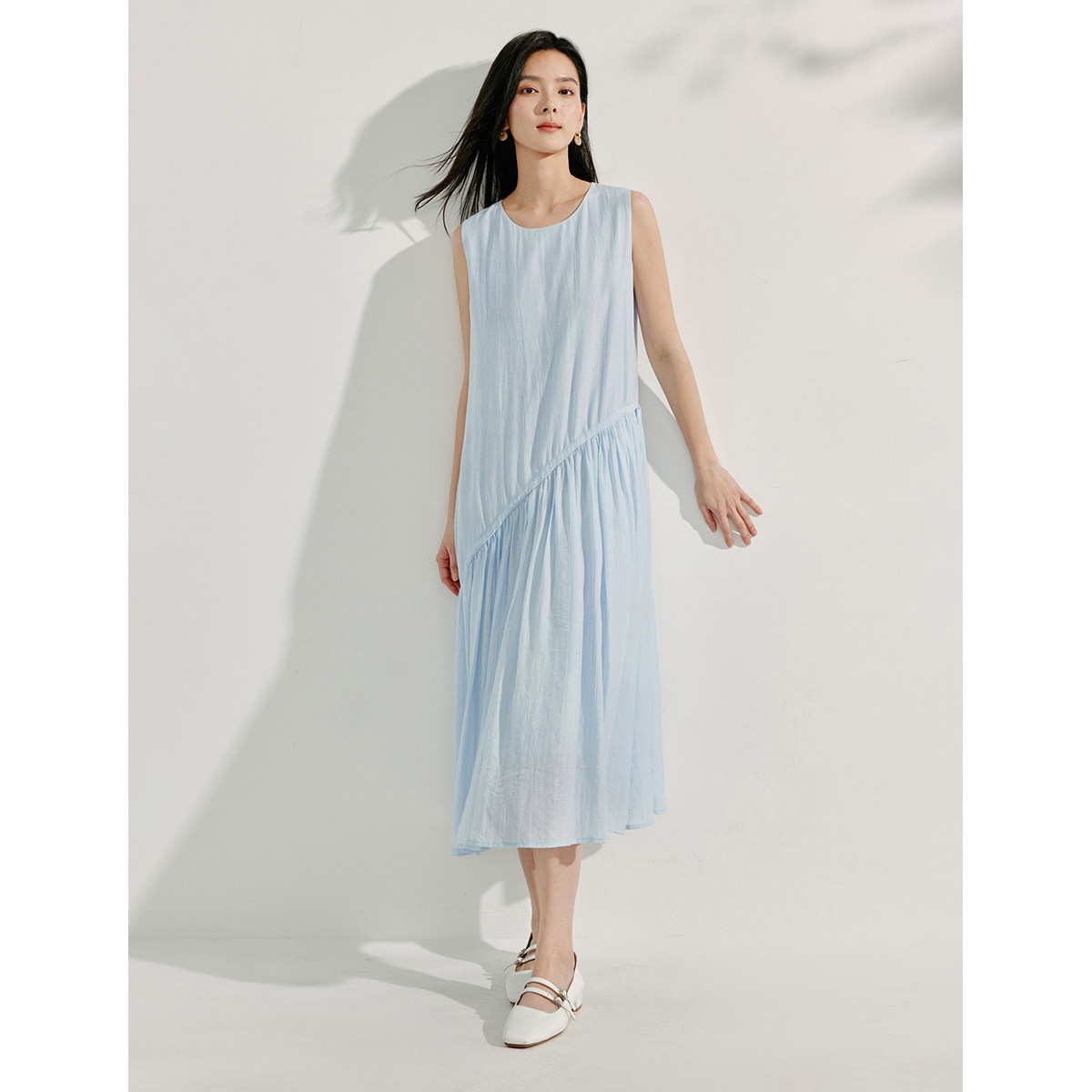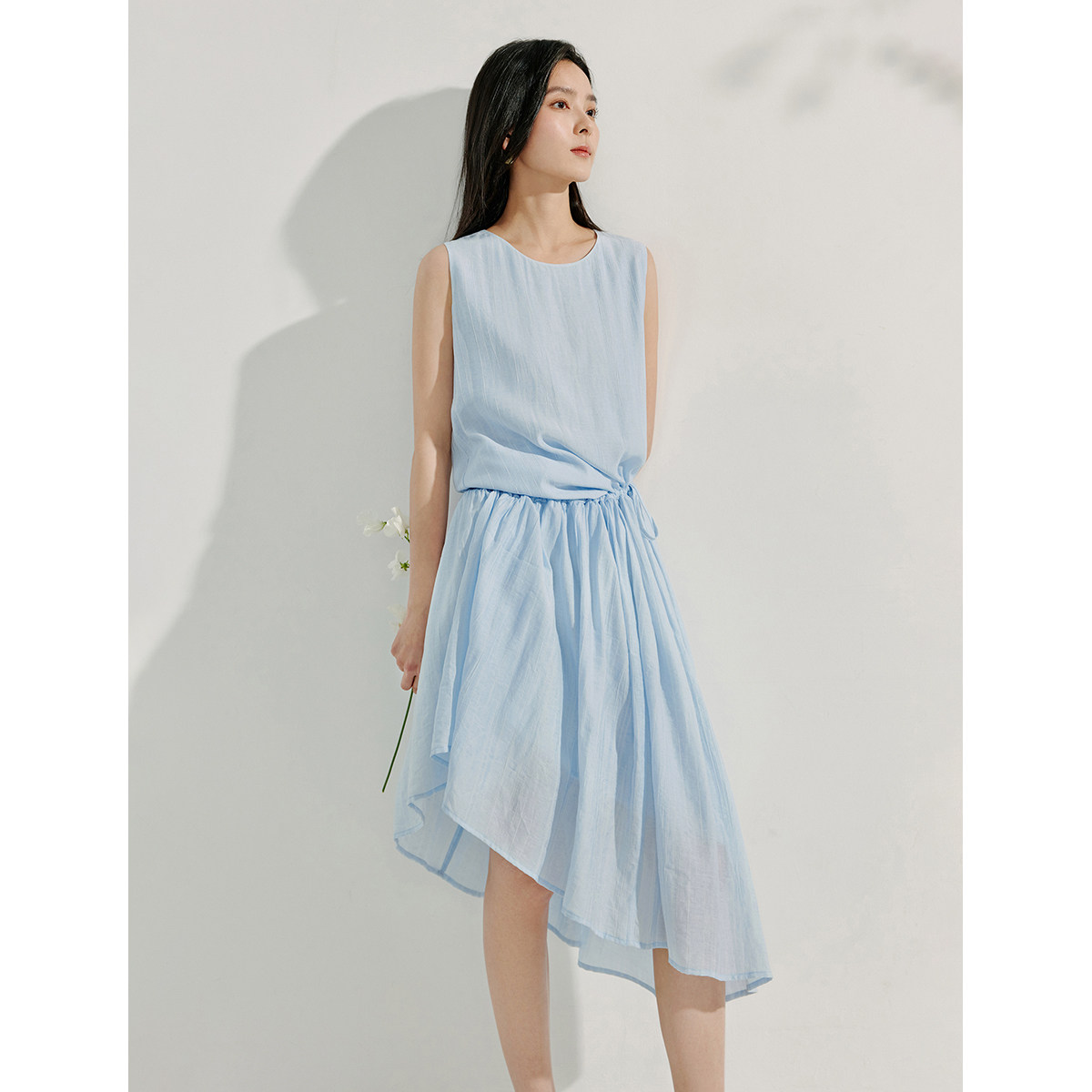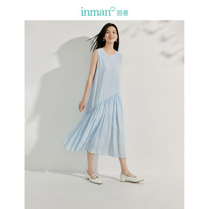 茵曼法式设计感抽绳连衣裙女2025年夏季新款宽松中长款背心裙子
