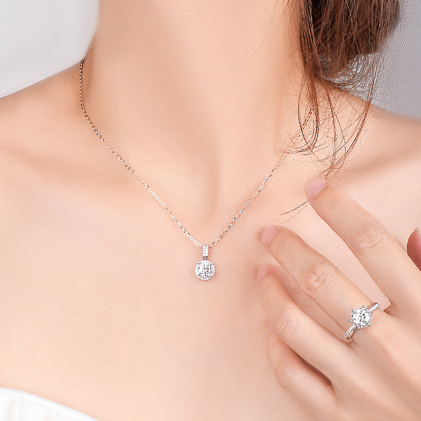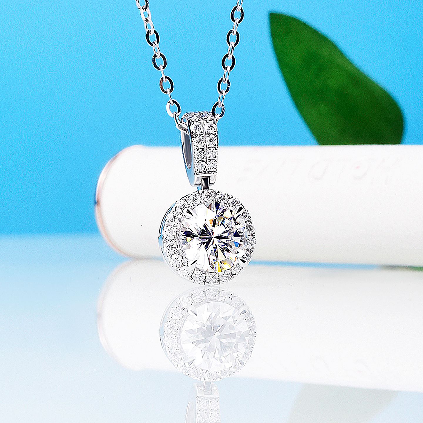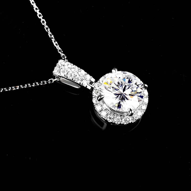 IGI培育钻石吊坠女18K白金50分一克拉满钻圆包形围镶锁骨项链铂金