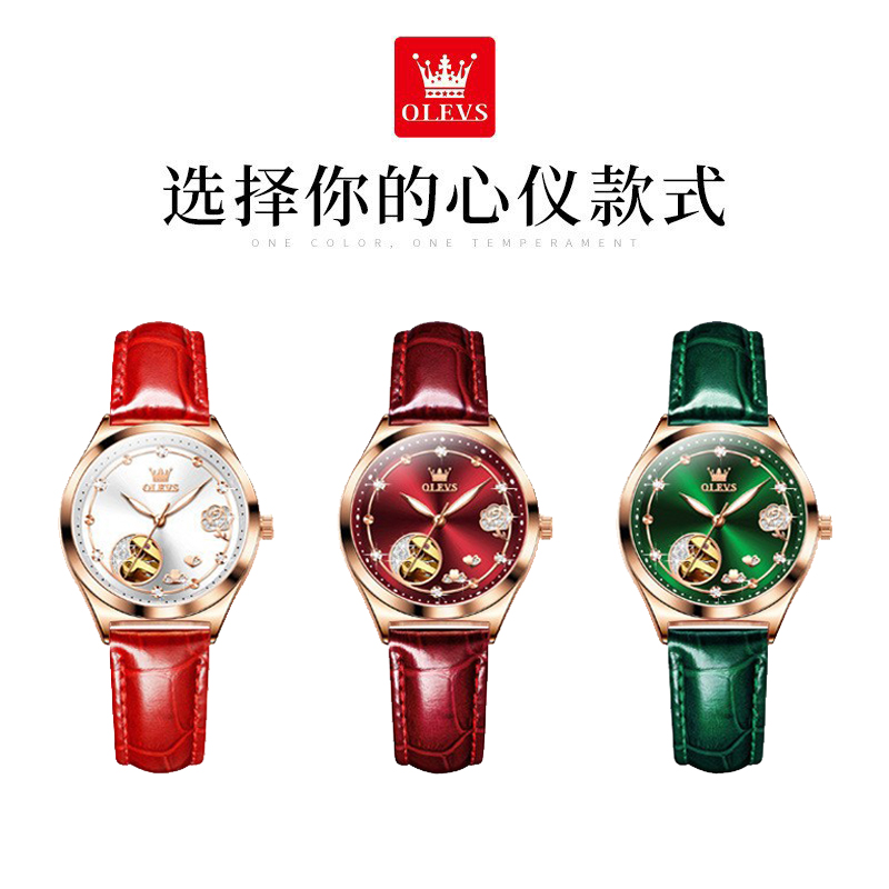 欧利时品牌手表女士新款时尚气质镶钻轻奢小众夜光镂空防水机械表