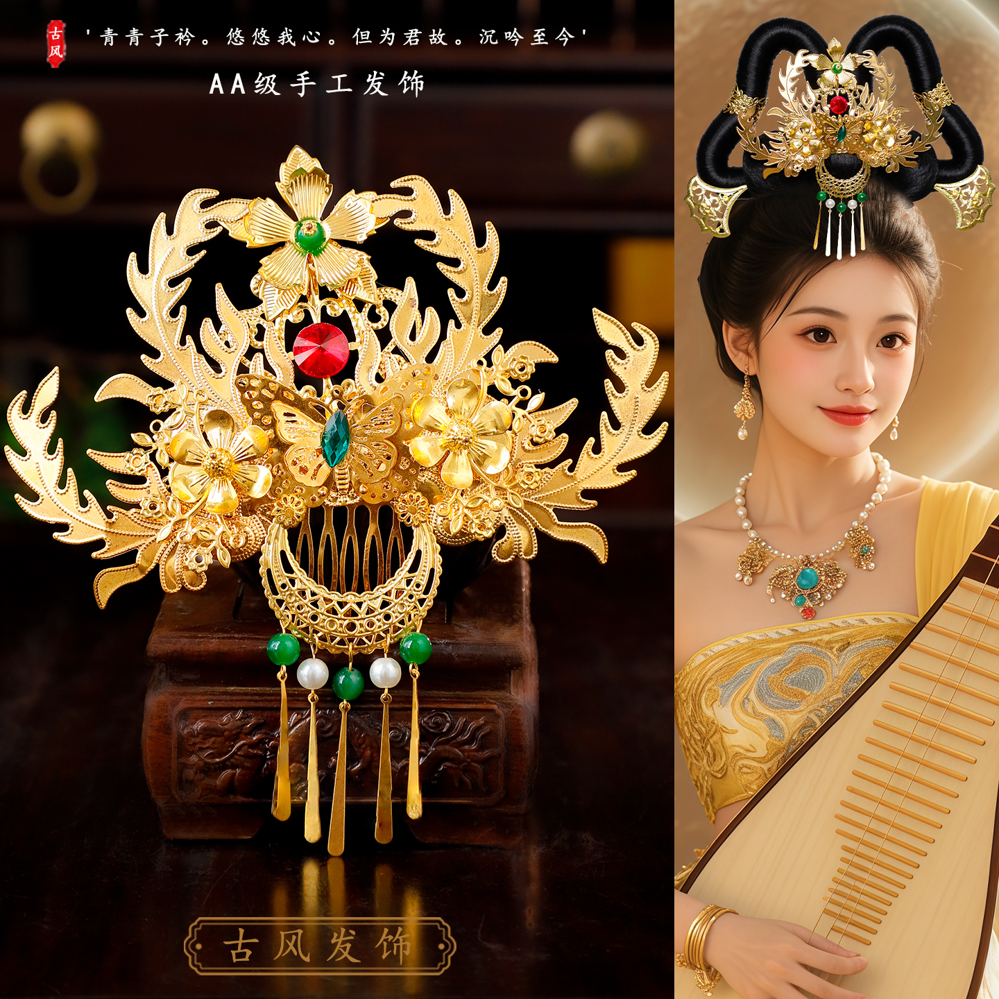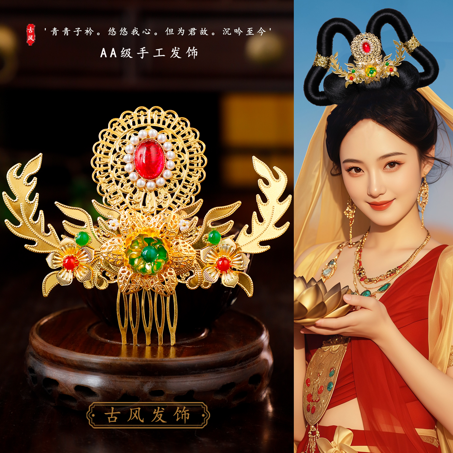 宫廷发饰百搭气质古风汉服敦煌异域头冠流苏插梳凤冠唐风写真配饰