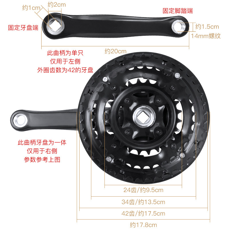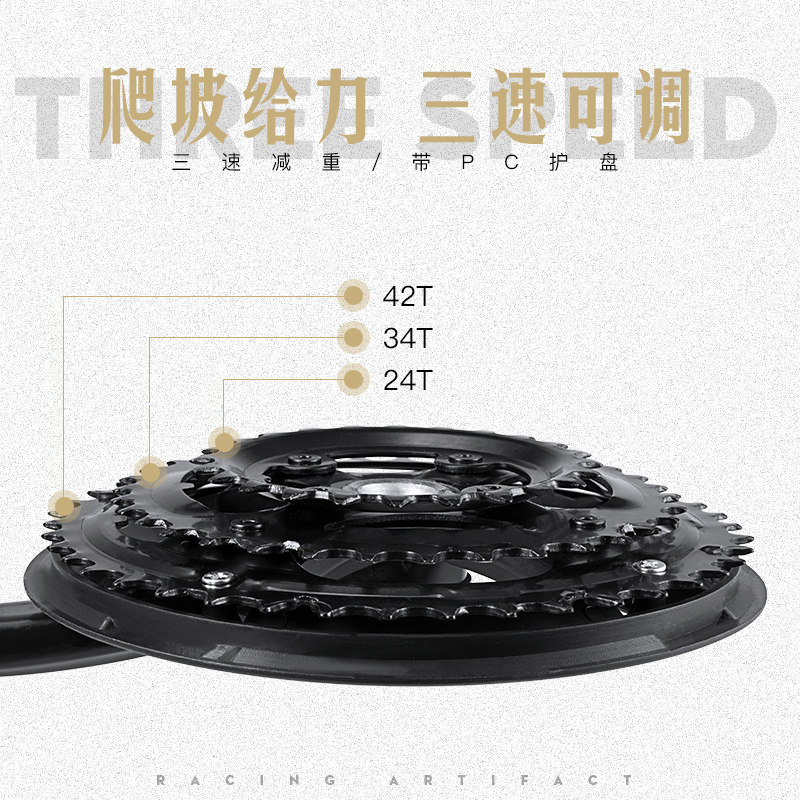 山地车38齿牙盘28齿盘27速24自行车7公路8铝合金9曲柄48T中轴配件