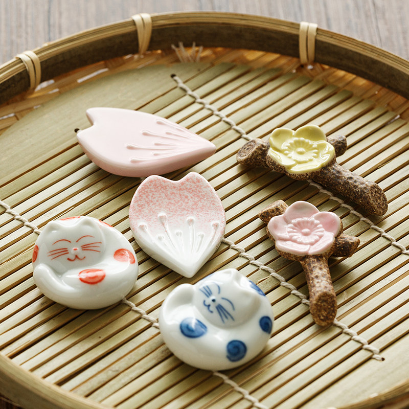 陶瓷筷子架创意筷架樱花造型筷枕 和风餐具筷托福猫日式托架合辑
