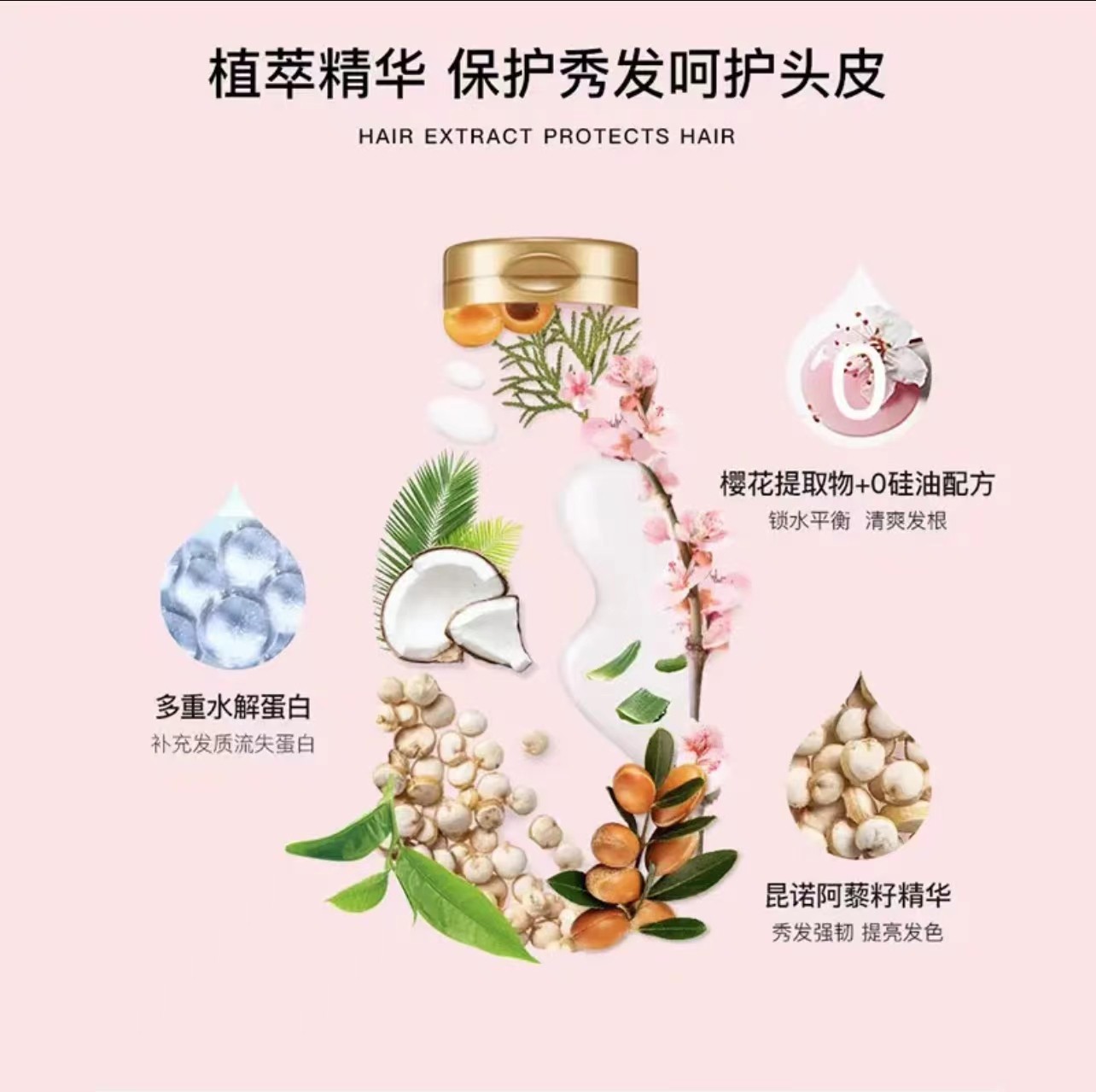 博柔樱花女士洗发水控油蓬松无硅油洗发水香味持久留香护发素柔顺