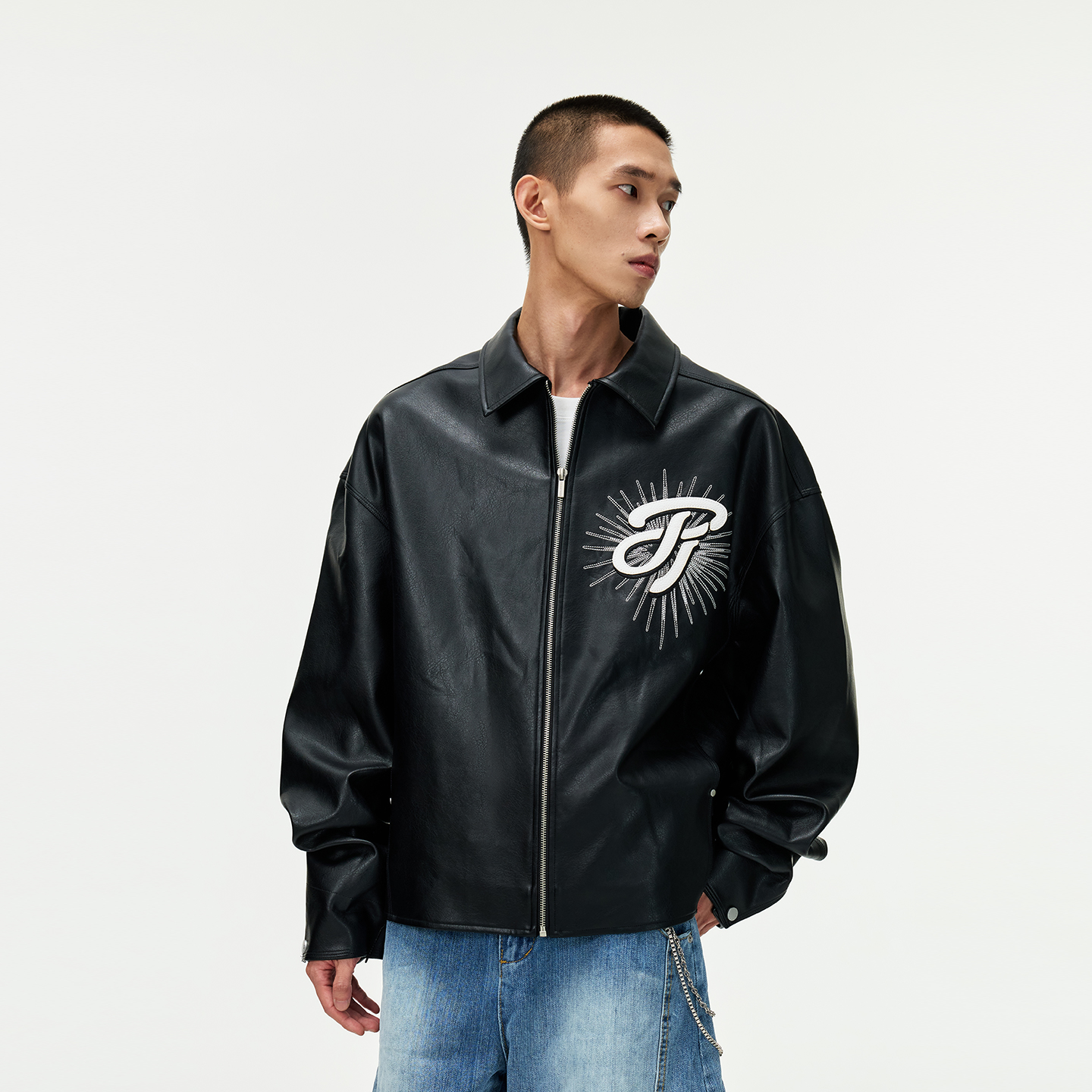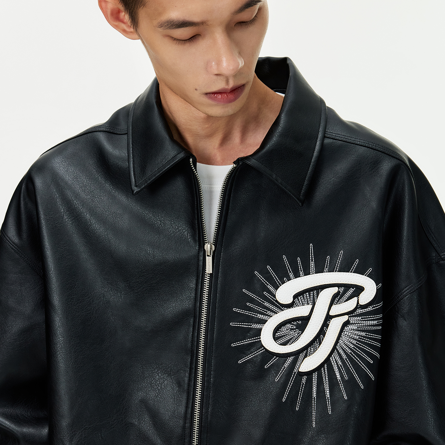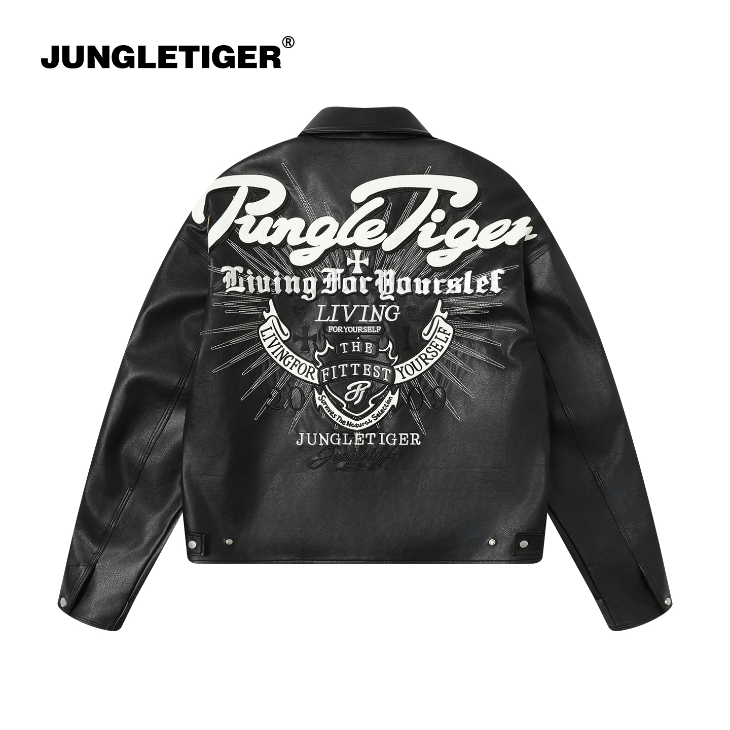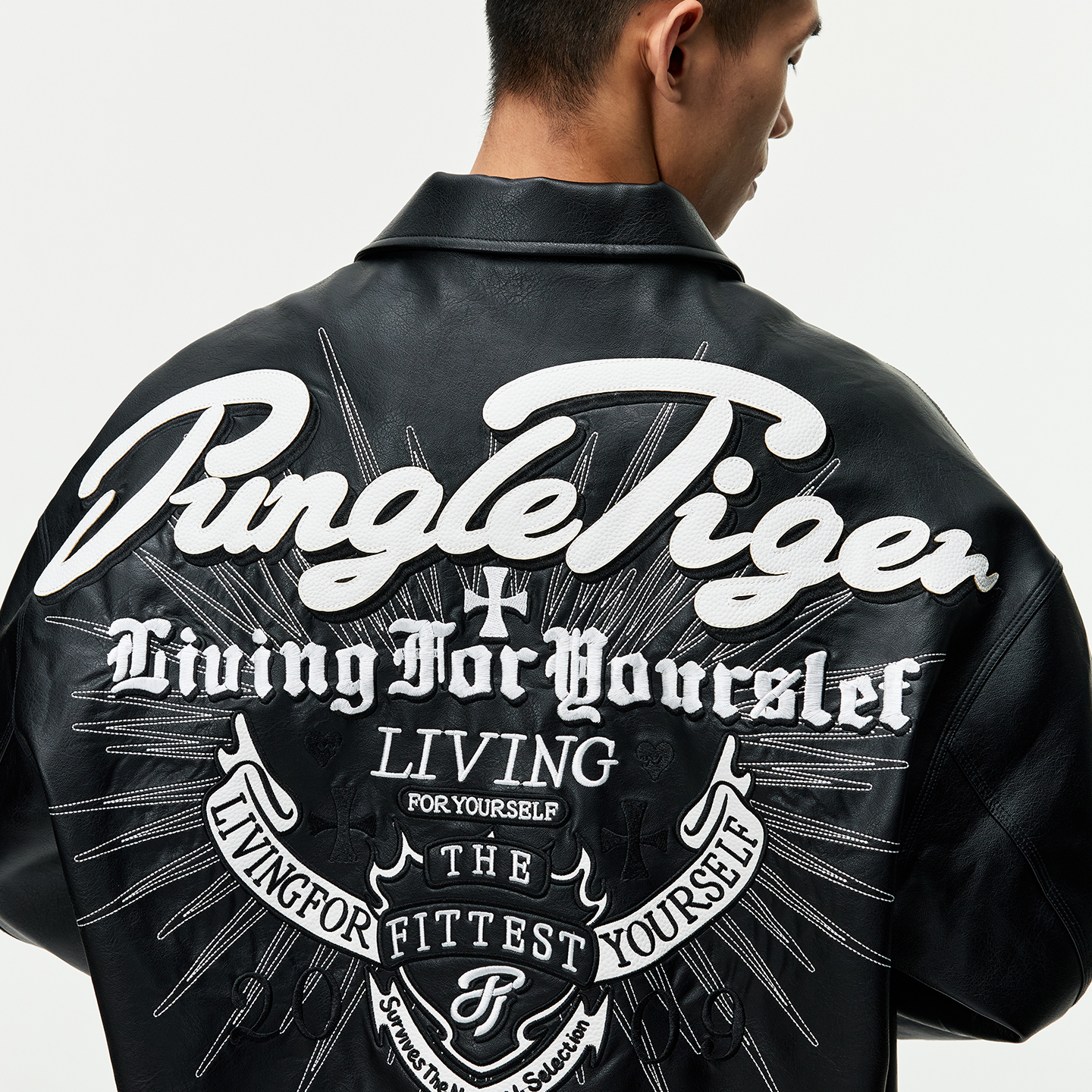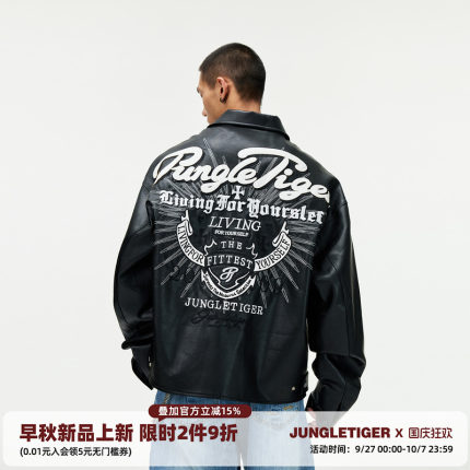 丛林老虎美式机车刺绣皮衣夹克男