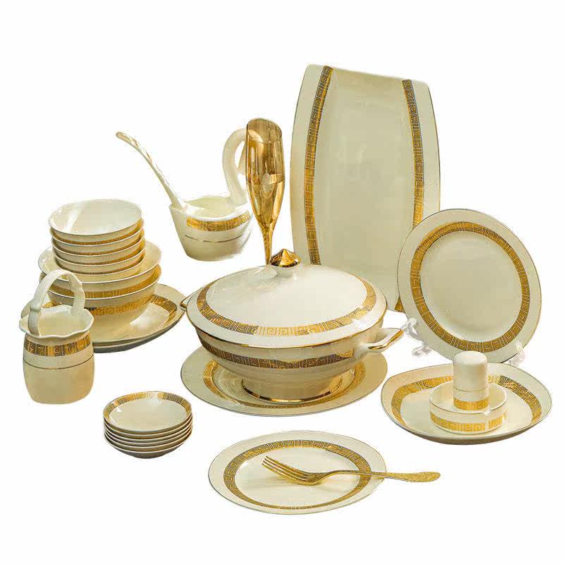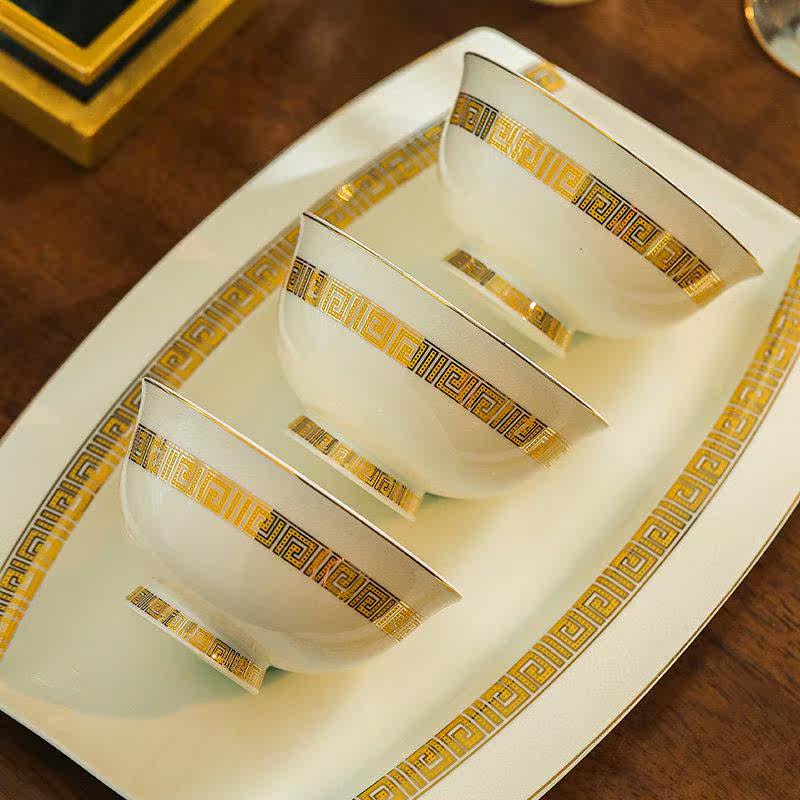 景德镇骨瓷餐具套装高档奢华陶瓷器碗碟套装家用欧式轻奢碗盘组合