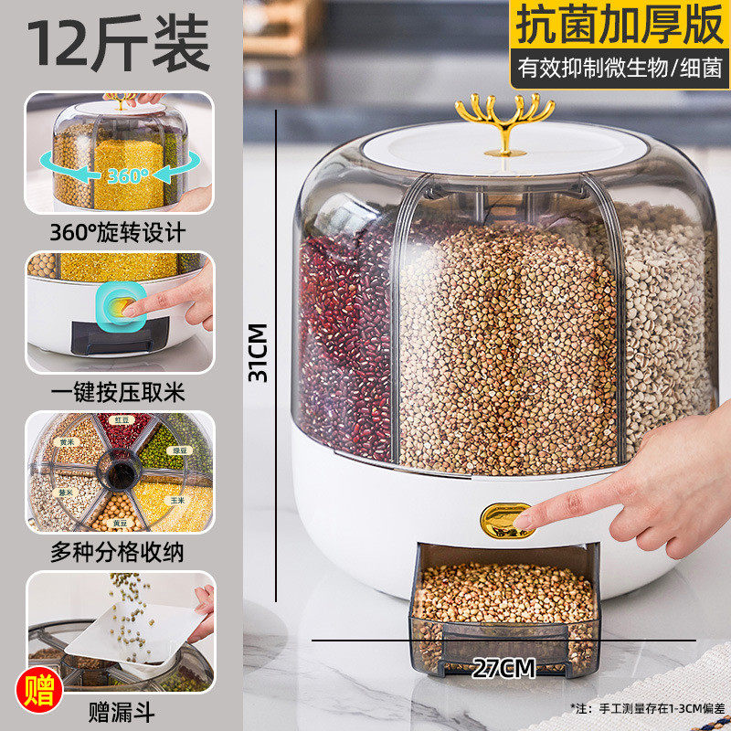 分格装米桶旋转家用防虫防潮密封五谷杂粮收纳盒储存罐储米箱容器
