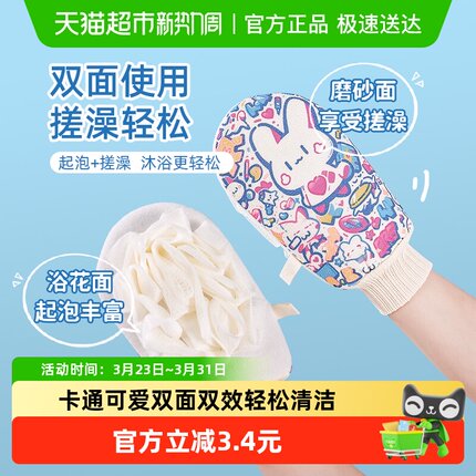云蕾可爱卡通搓澡手套浴花二合一双面双效搓背巾神器沐浴搓泥1只