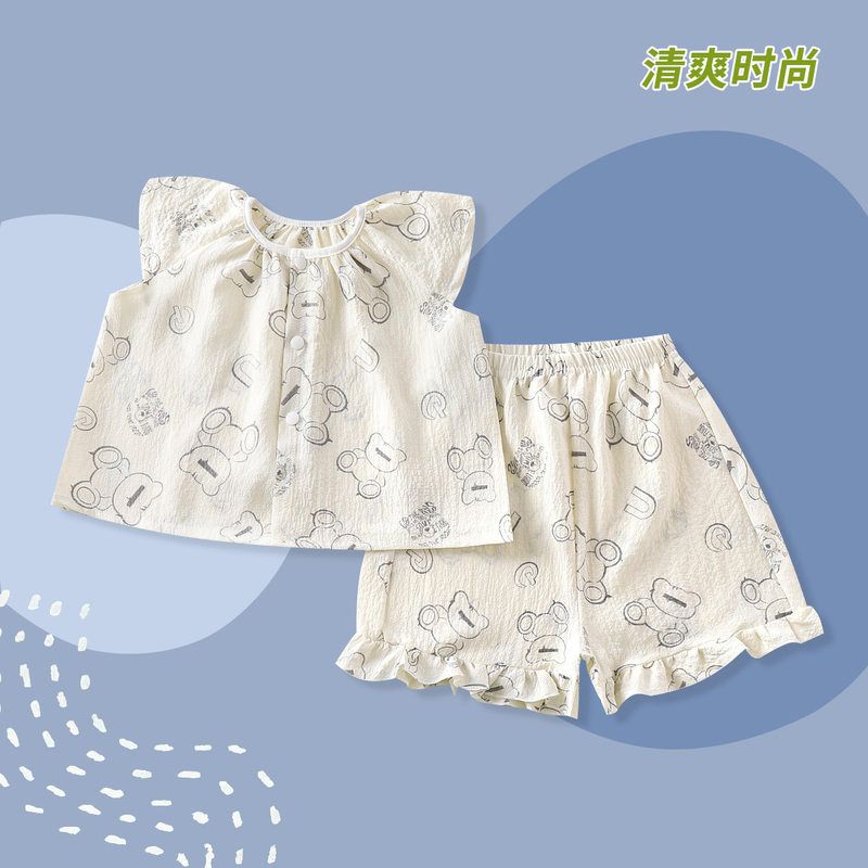 两件套新款薄款夏季小儿童睡衣甜美短袖女童飞袖套装家居服洋气