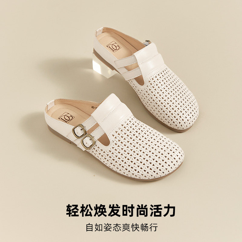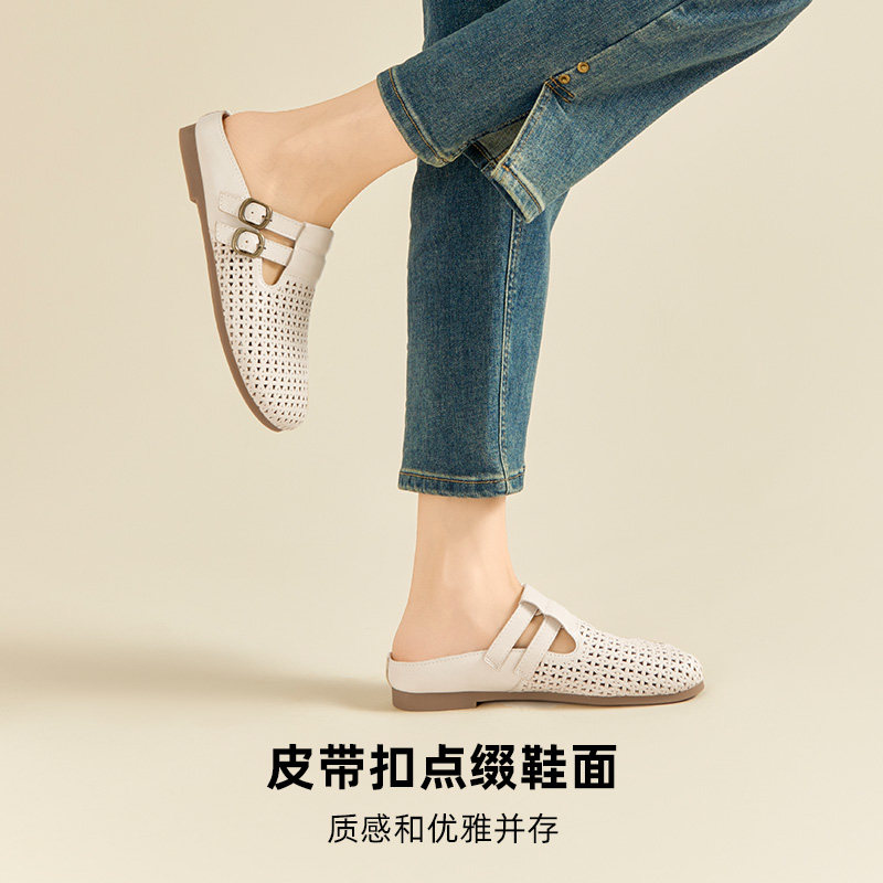 【羊皮】真皮包头半拖鞋凉拖女夏外穿2025新款平底一脚蹬鞋勃肯鞋