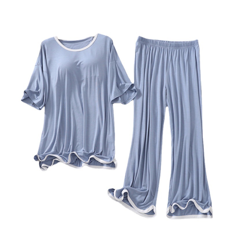 2024新款莫尔女夏季睡衣宽松大码舒适套装短袖长裤可外穿家居服