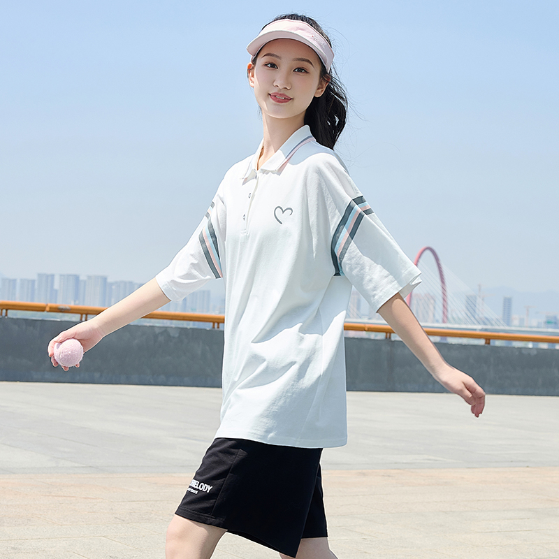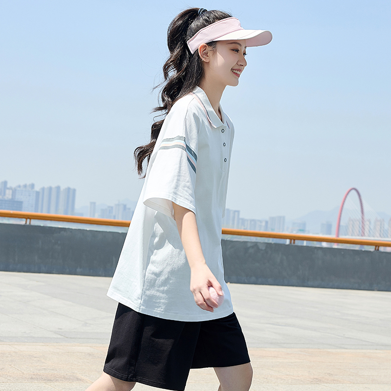 初中生运动套装少女POLO衫T恤新款宽松短袖t恤短裤休闲两件套热裤