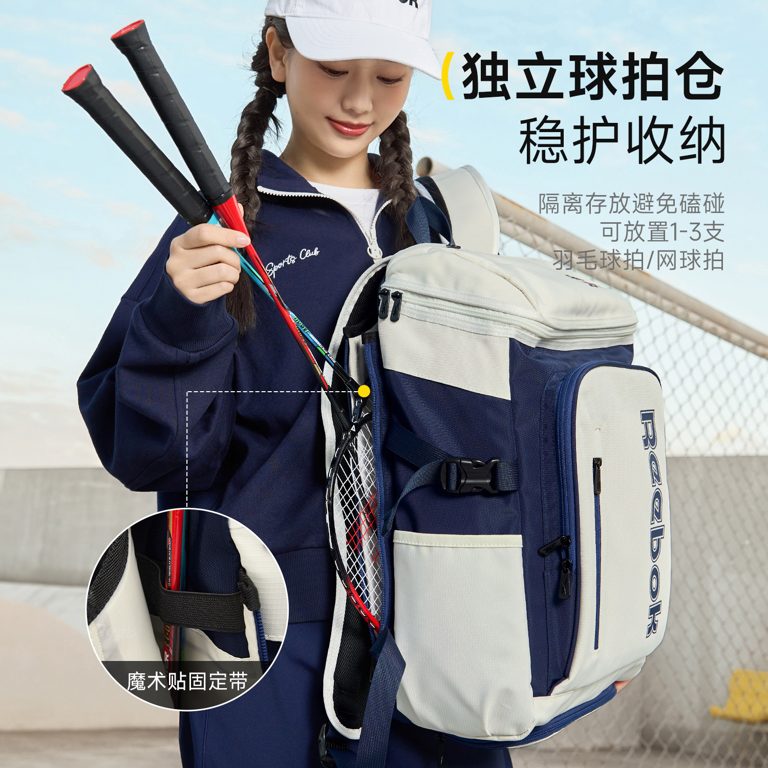 Reebok锐步羽毛球包男运动双肩包大容量网球训练背包女学生球拍包