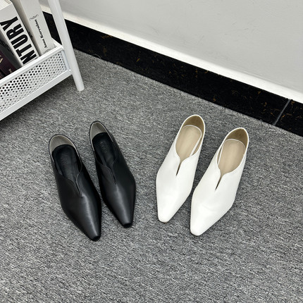 出口日单 GW600+纯色平底单鞋软面尖头设计感轻便一脚蹬穆勒鞋