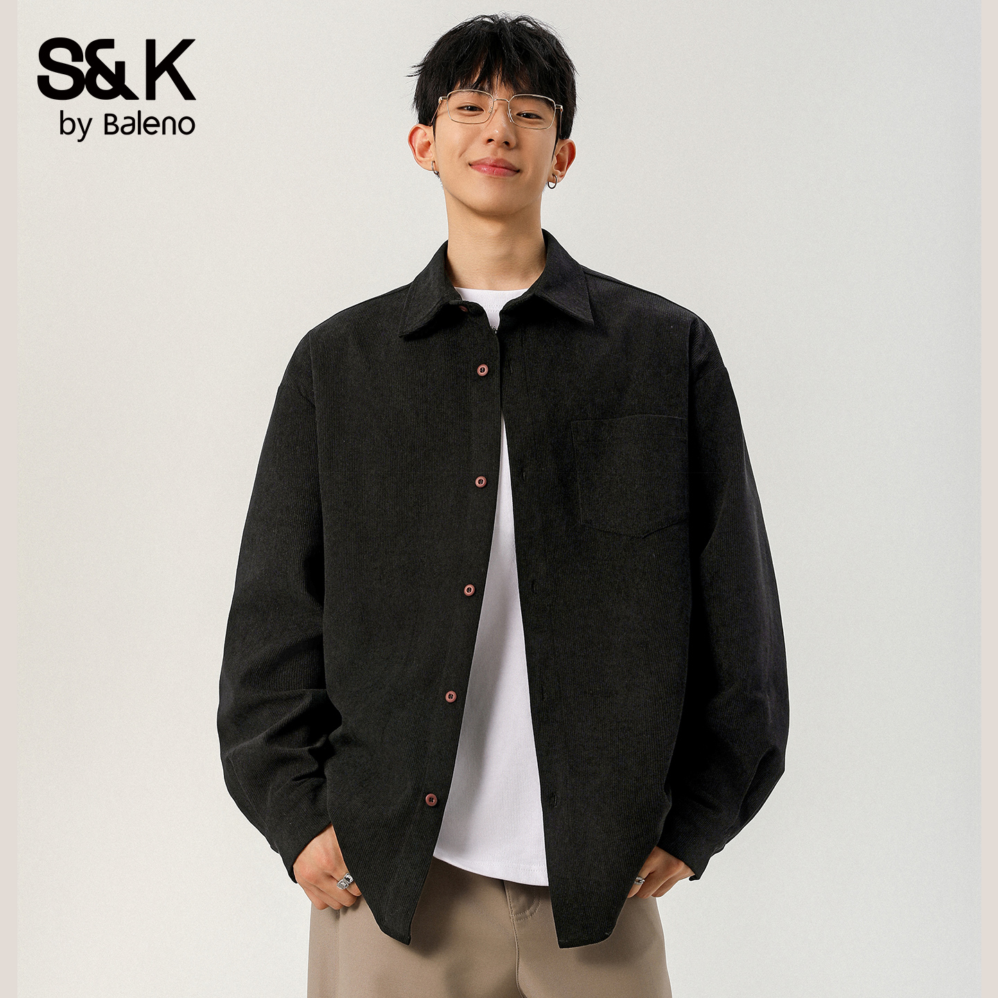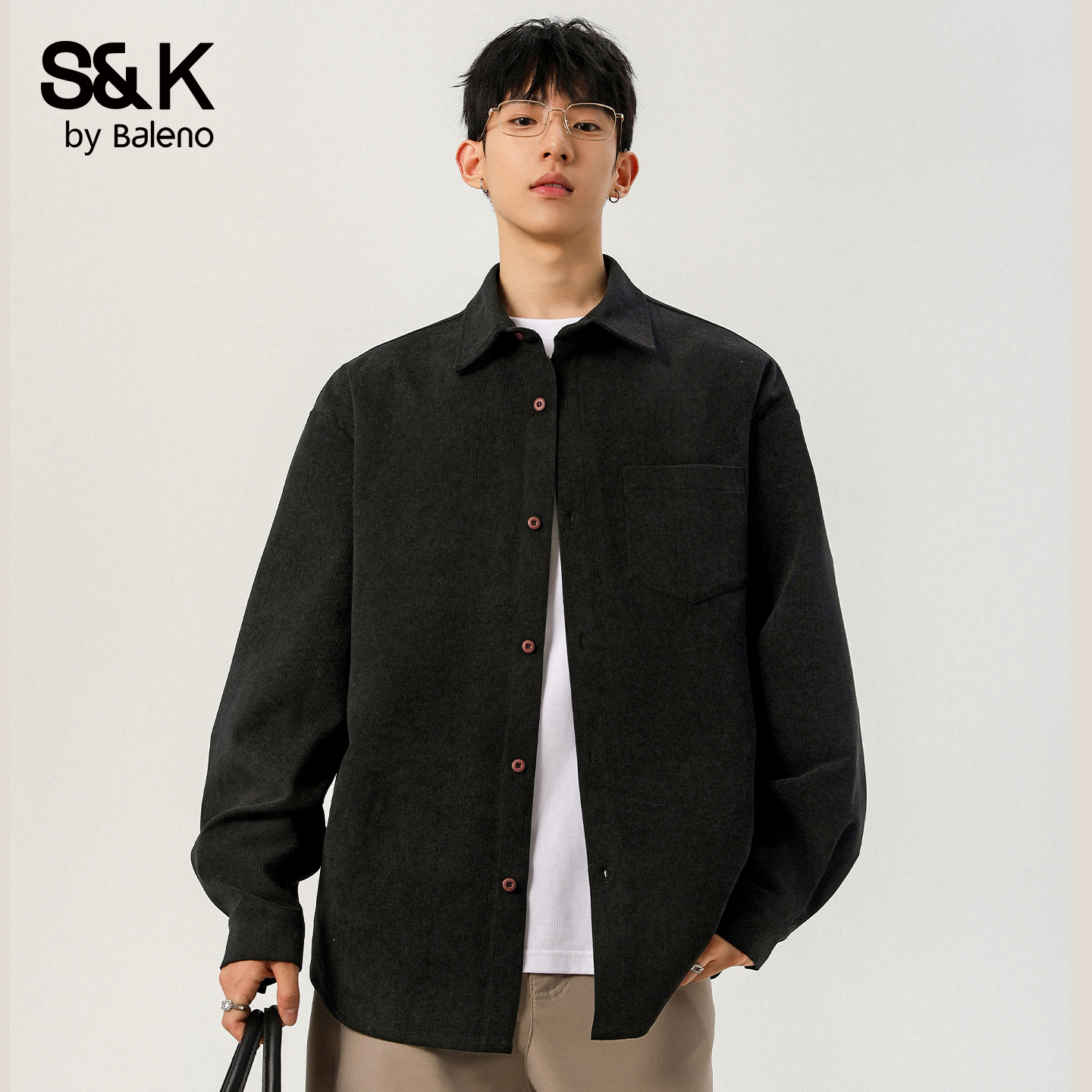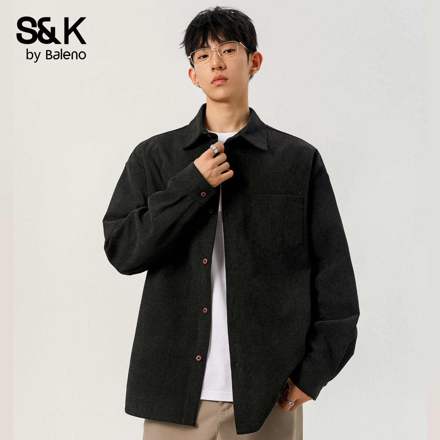 班尼路SK日系复古秋季休闲衬衫长袖男士百搭时尚翻领潮流上衣服MS