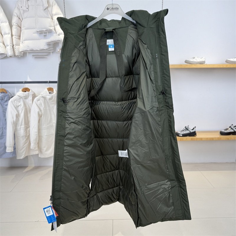 2025秋冬新款哥伦比亚户外女拒水加厚保暖连帽中长款羽绒服WR4869