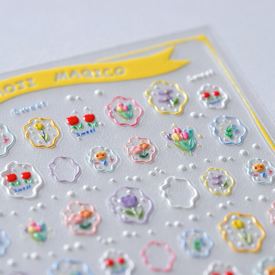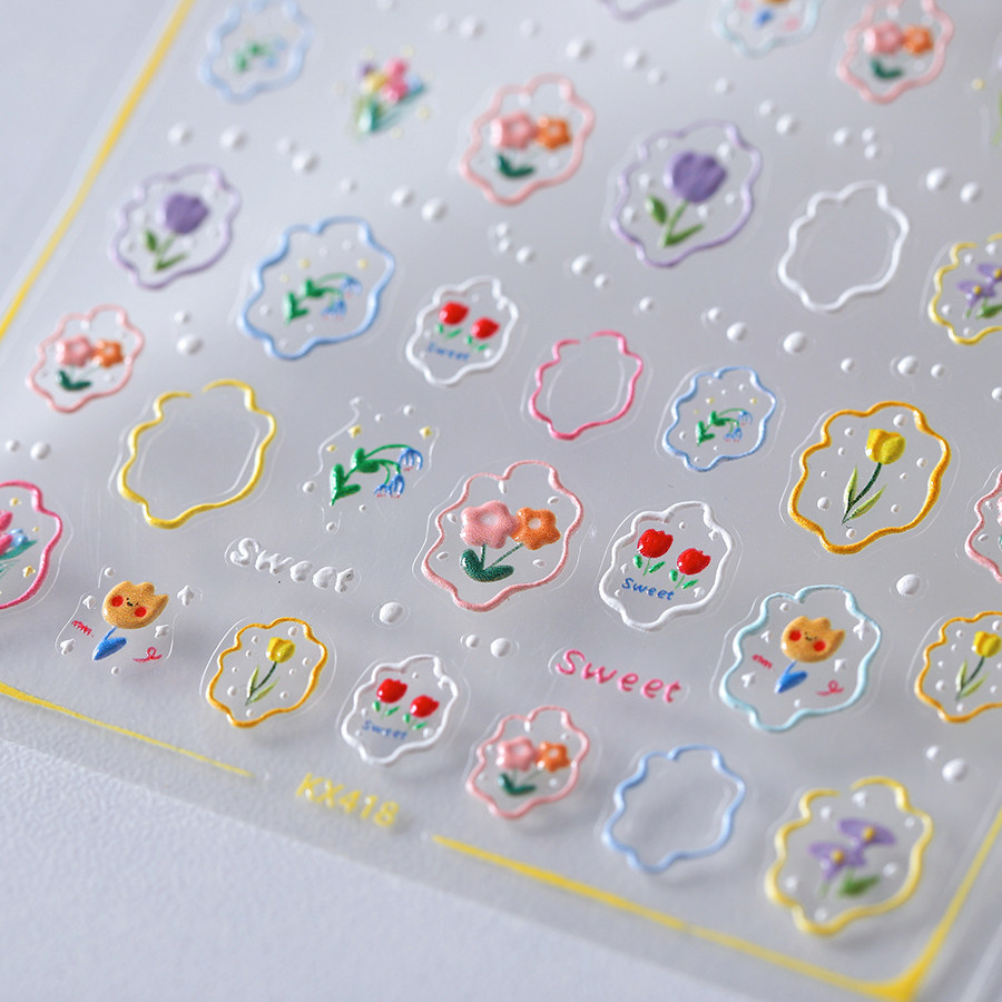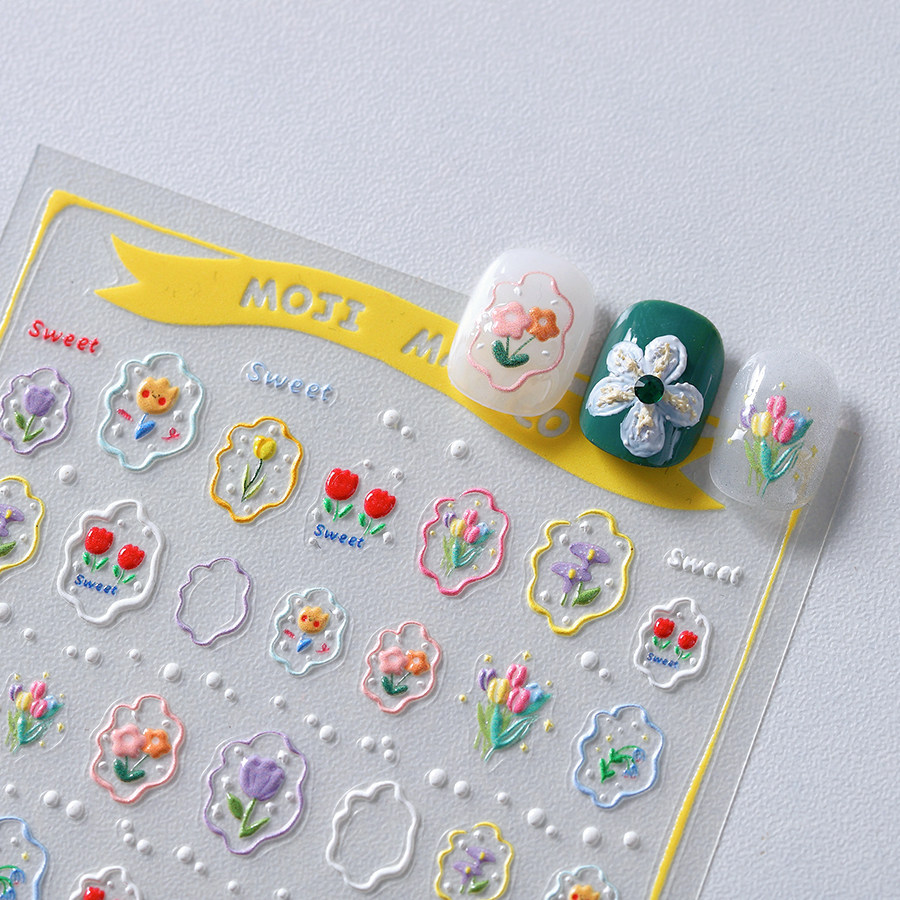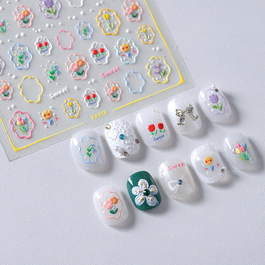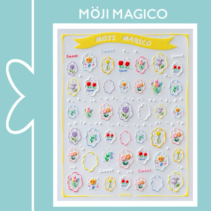 茉季卡通郁金香花朵立体浮雕美甲贴纸防水指甲贴装饰饰品kx418