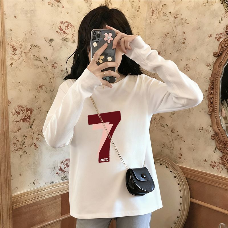 小众甜酷风印花新款纯棉长袖t恤女装中长款宽松显瘦白色上衣秋季