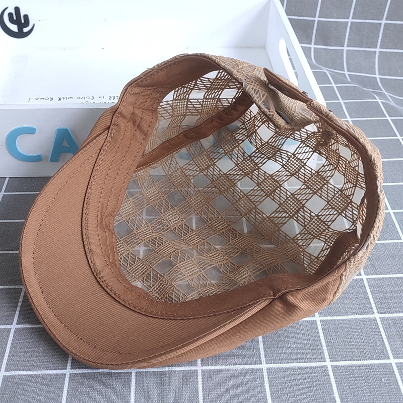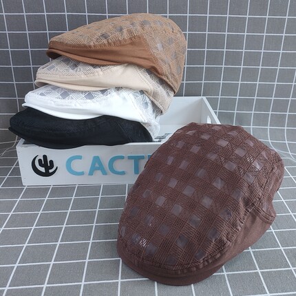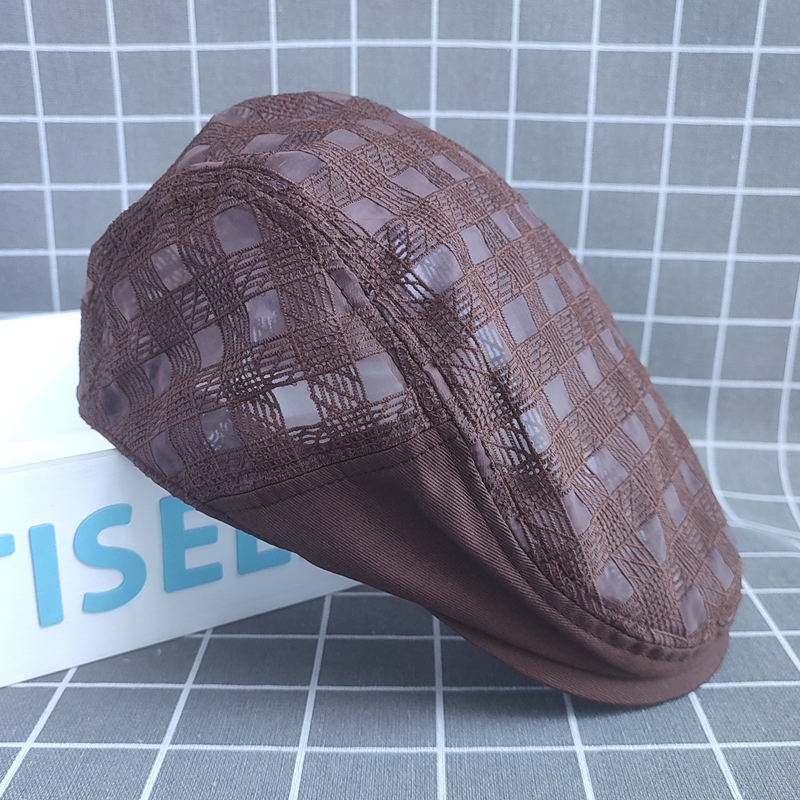 格子贝雷帽女2023新款夏天薄透气鸭舌帽韩版防晒遮阳帽复古网纱帽