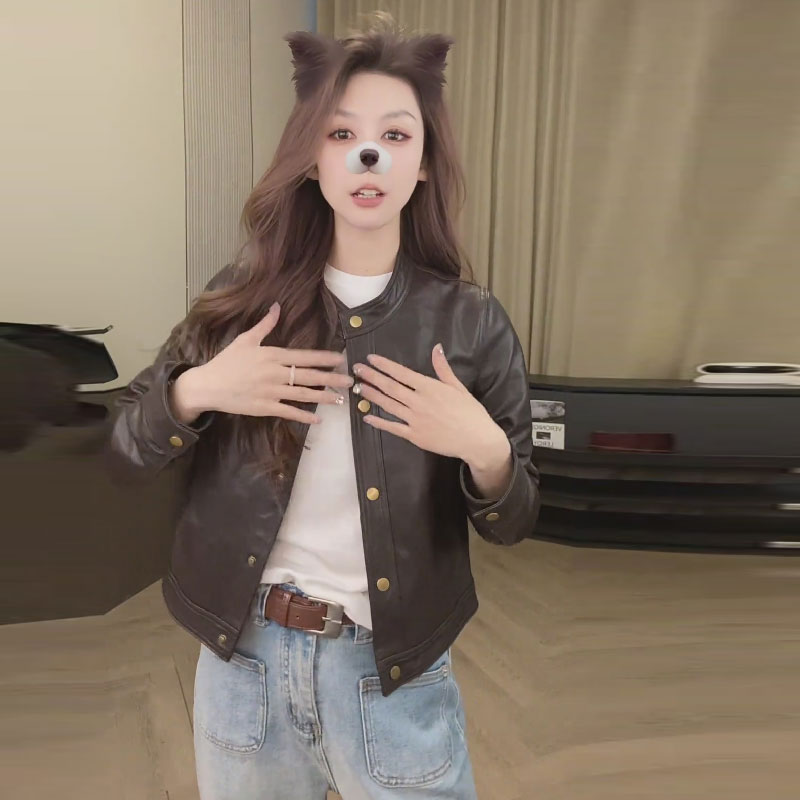 复古黑色立领小皮衣外套女春秋小个子短款2025新款机车PU皮夹克潮