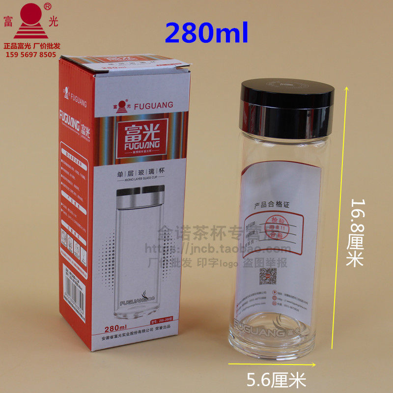 富光单层玻璃杯圆形加厚茶杯透明泡茶办公杯子礼品杯印字logo258