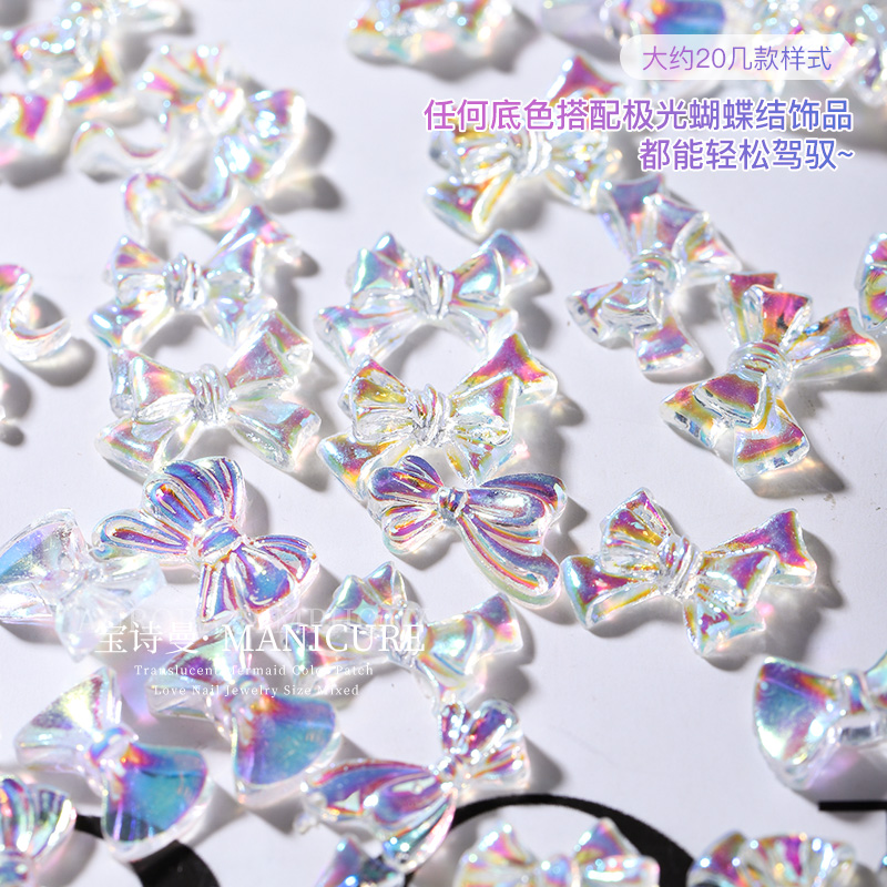 混装极光美甲蝴蝶饰品水晶配饰透明钻石蝴蝶结2025年新款网红爆款
