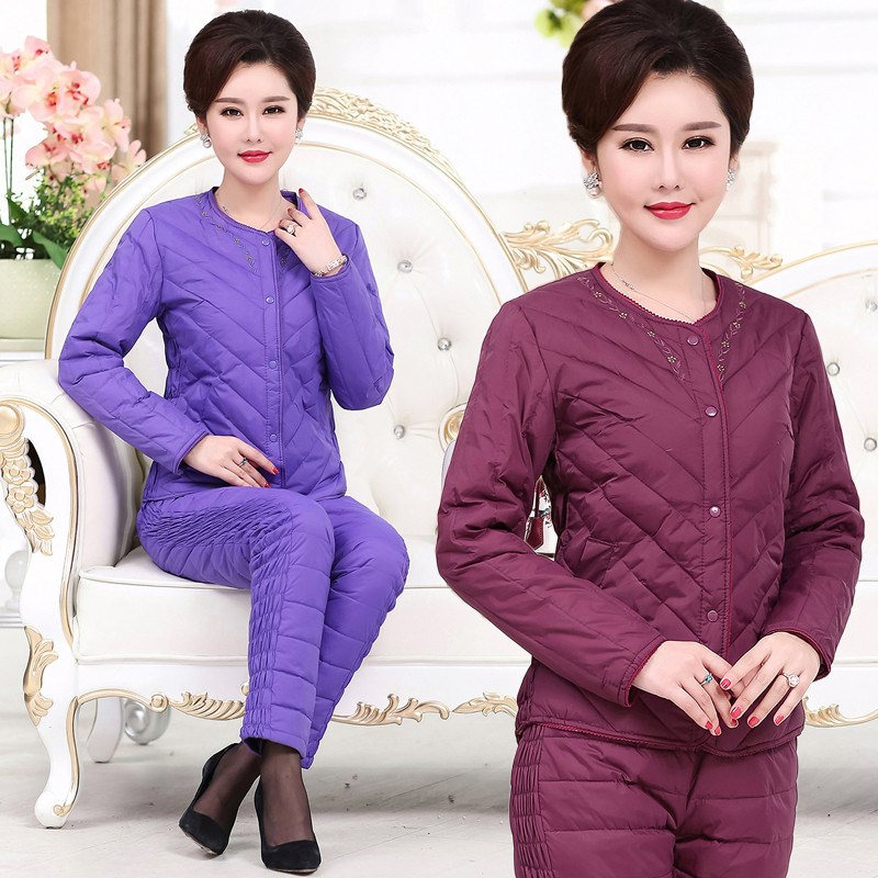 中老年男款女款保暖羽绒服内胆套装加厚爸爸妈妈轻薄老年人羽绒裤