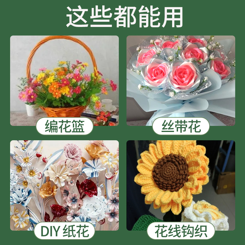 丝网花材料diy假花绿铁丝2号花枝胶包手工玫瑰花钩织花杆花艺钩针