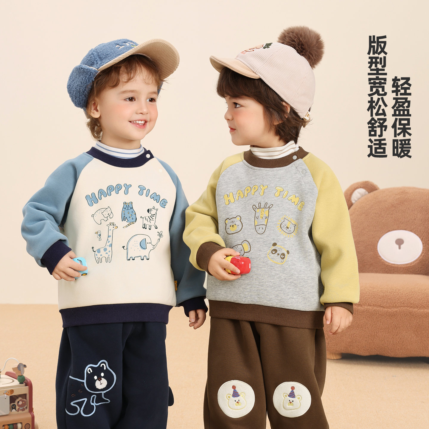 咔咔熊猫男童卫衣冬季婴儿加绒厚上衣小宝宝2025新款衣服儿童童装