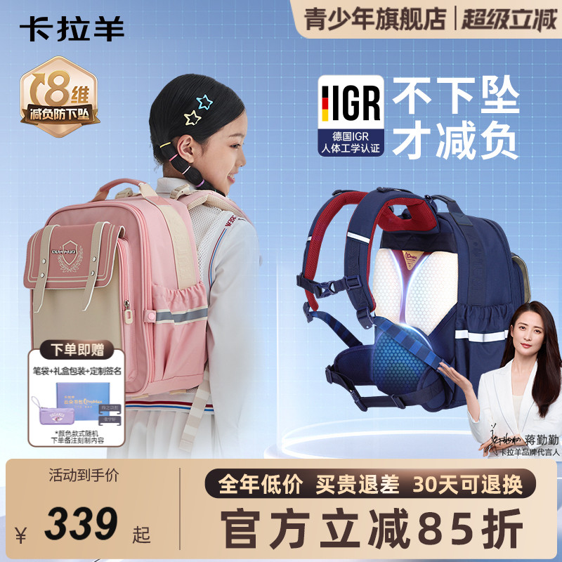 【蒋勤勤代言】卡拉羊1-4-6年级云朵书包ProMax版男小学生书包女8维减负防下坠儿童背包幼升小学生书包