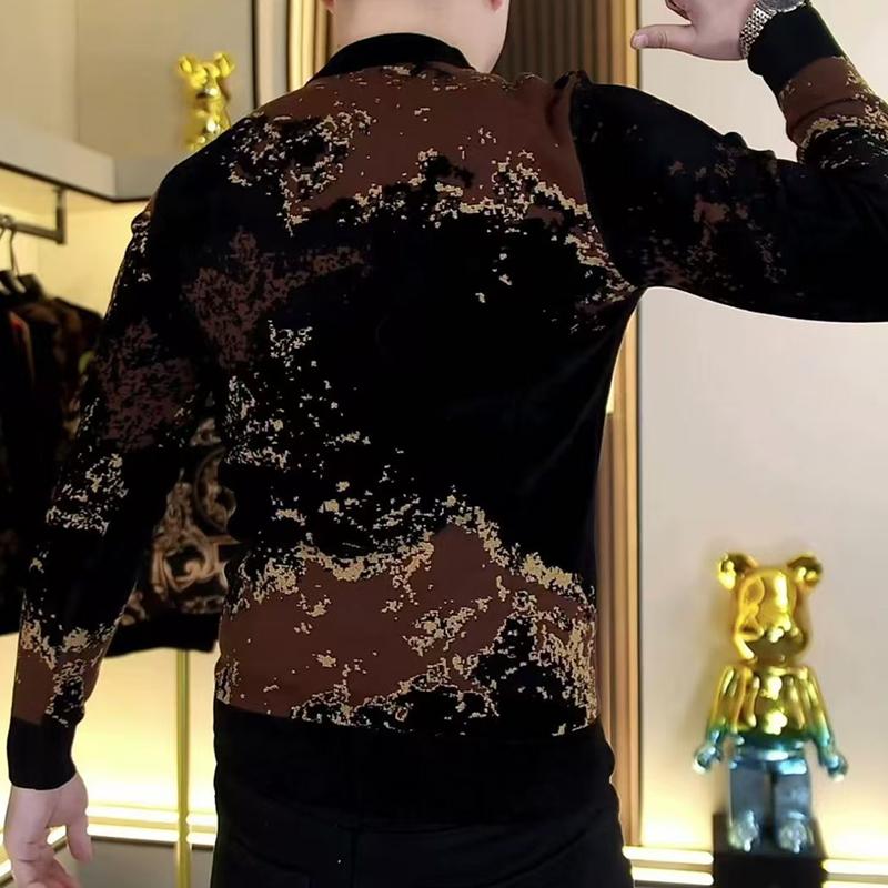 欧洲站天鹅绒毛衣男冬季新款字母烫钻百搭时尚网红修身针织打底衫