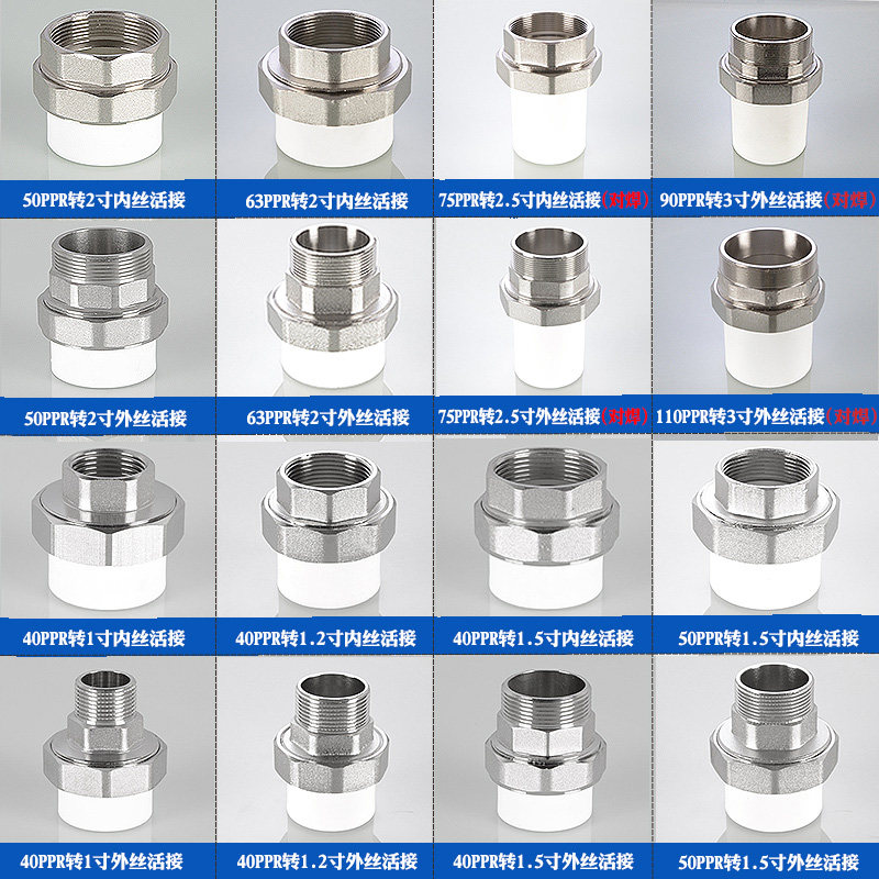 PPR40/1.2寸铜外丝活接50/63/75管件1.5寸/2寸/2.5寸内丝接头配件