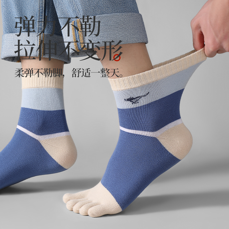 七匹狼五指袜子男士中筒袜纯棉防臭吸汗春秋冬季全棉透气分趾男袜