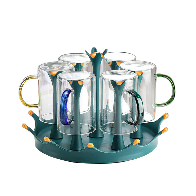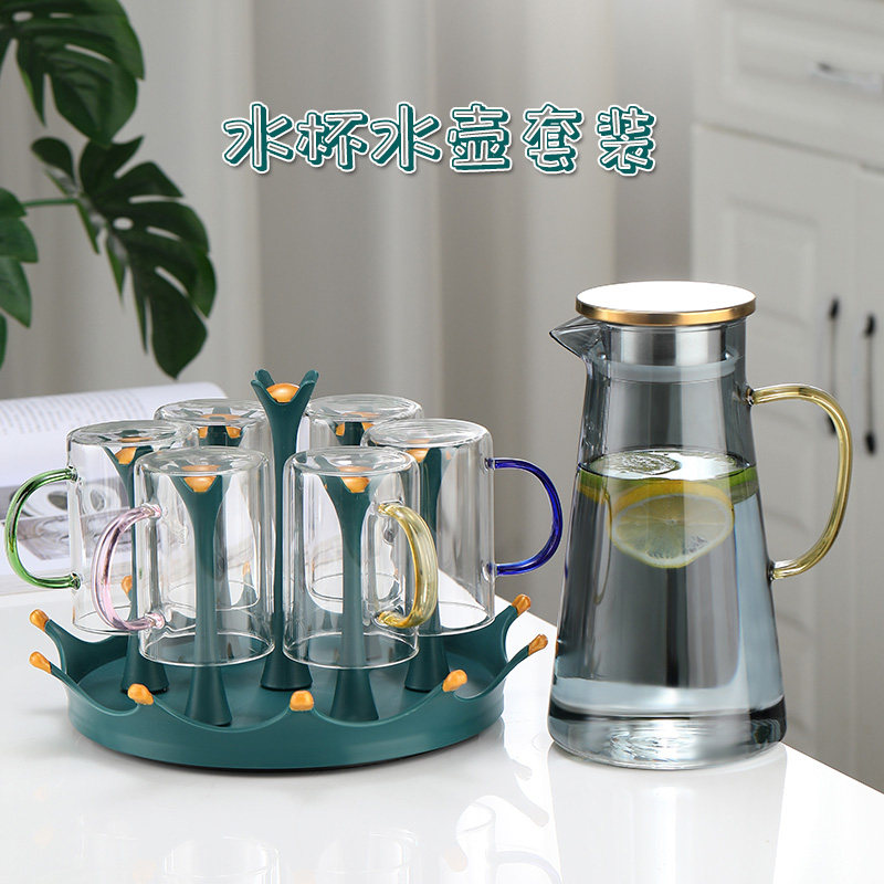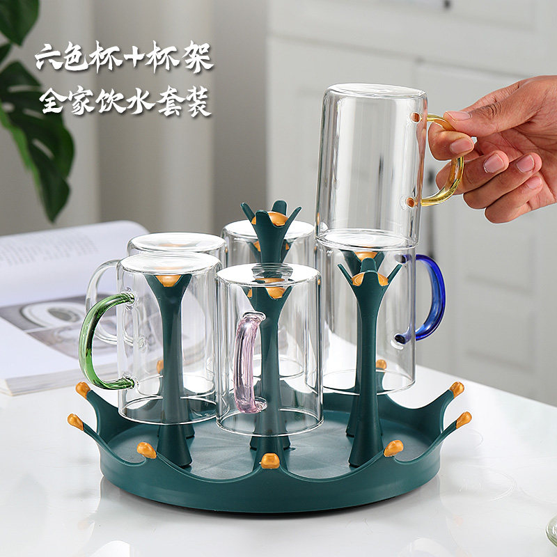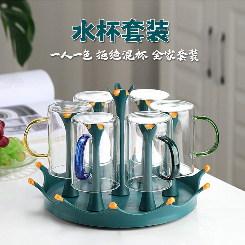 家用水杯透明杯子杯架水具套装耐高温玻璃茶杯家庭客厅玻璃杯套装