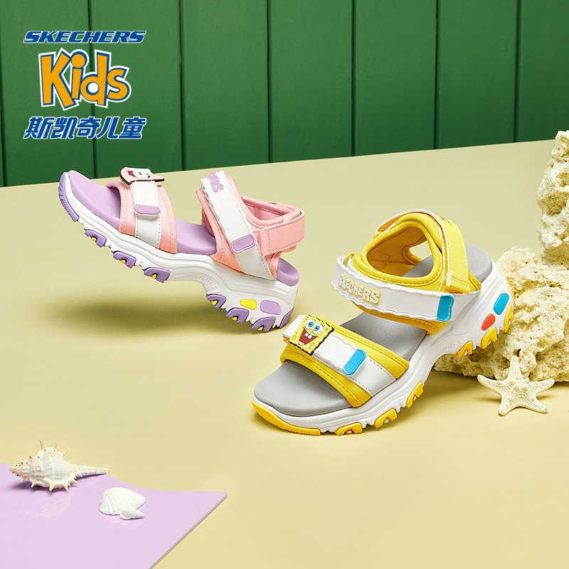 Skechers斯凯奇海绵宝宝夏新款儿童鞋露趾凉鞋男女童中大童沙滩鞋