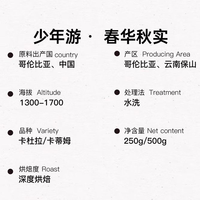 时澄 少年游 云南精品意式拼配哥伦比亚新鲜现磨咖啡豆250g/500g