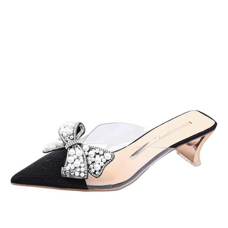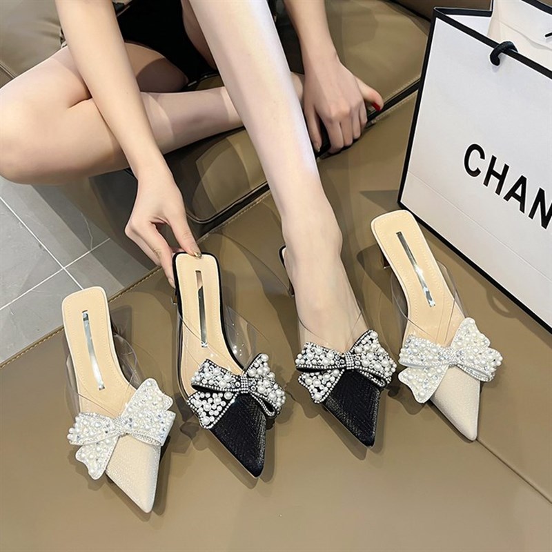 2025夏季新h款鞋子拖鞋女夏凉包头中跟粗跟鞋半拖鞋外穿尖头单鞋