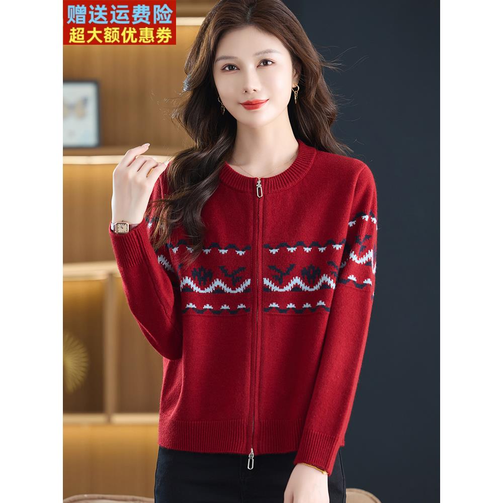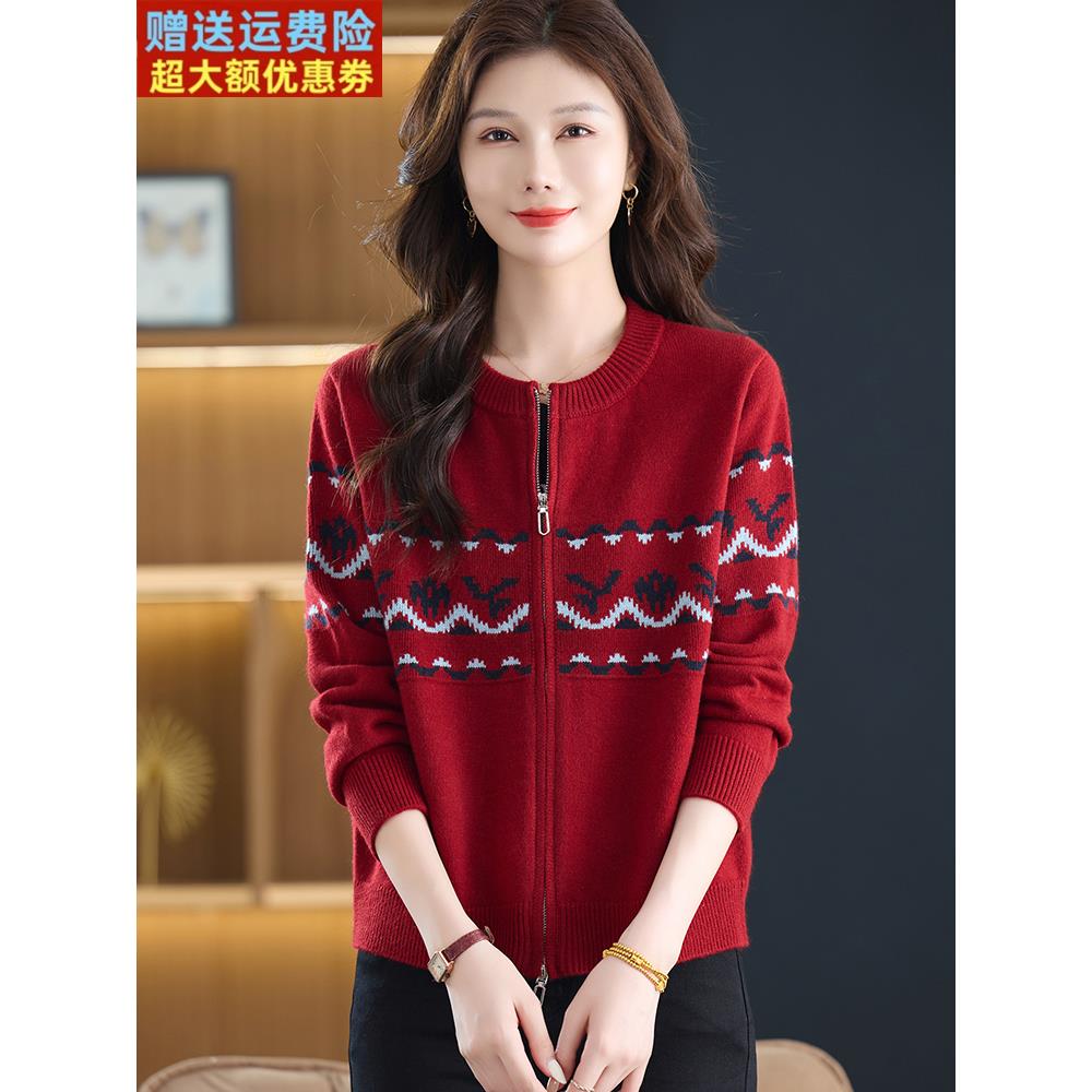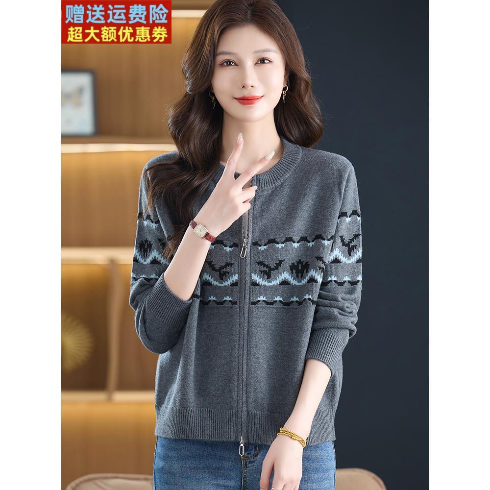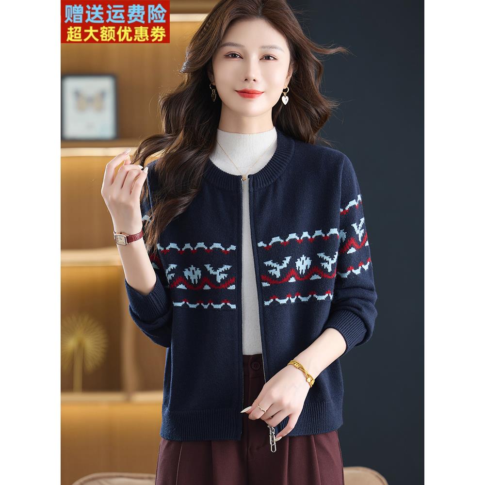 针织棒球服外套女春秋短款大码毛衣夹克2025新款洋气妈妈拉链开衫