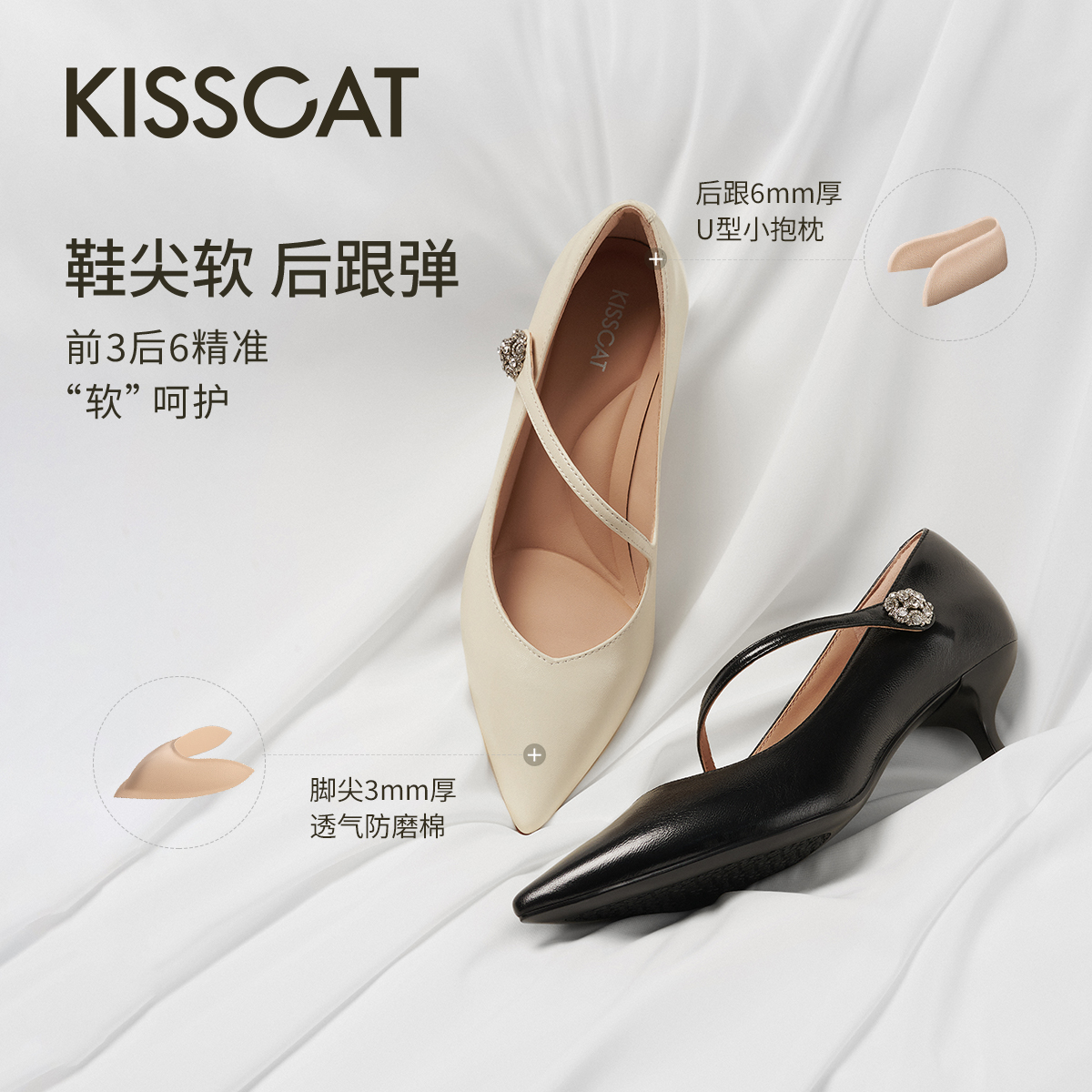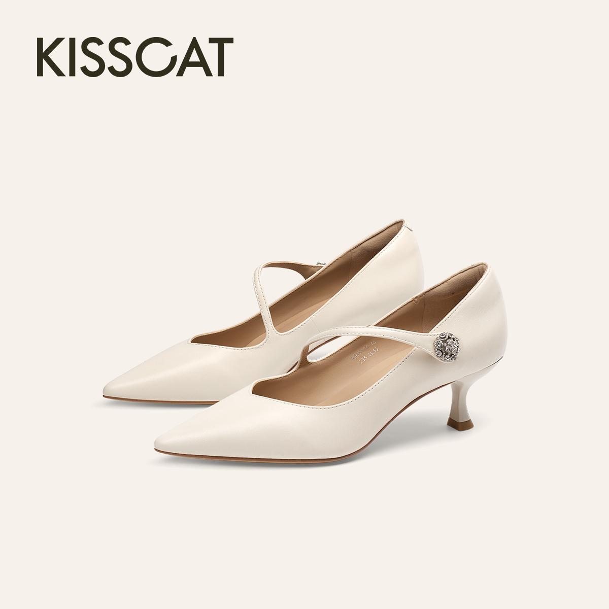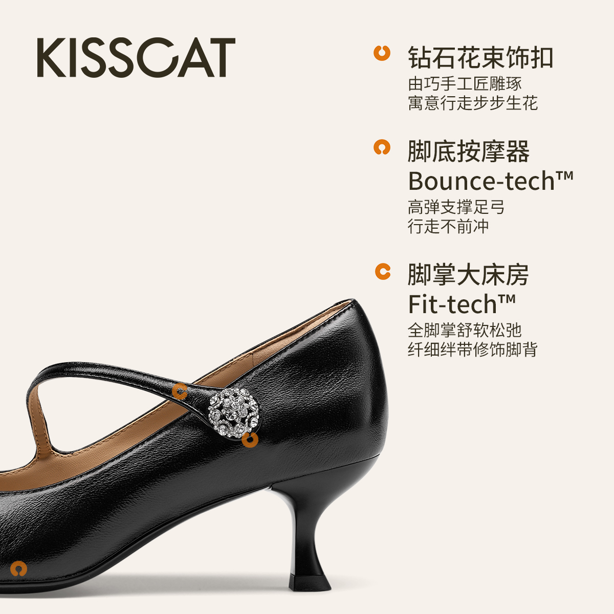 KISSCAT接吻猫[花漾高跟玛丽珍]25春季新款通勤高跟鞋尖头单鞋女