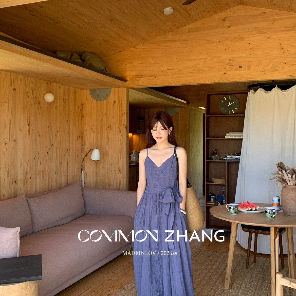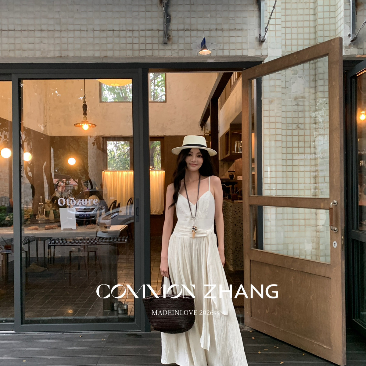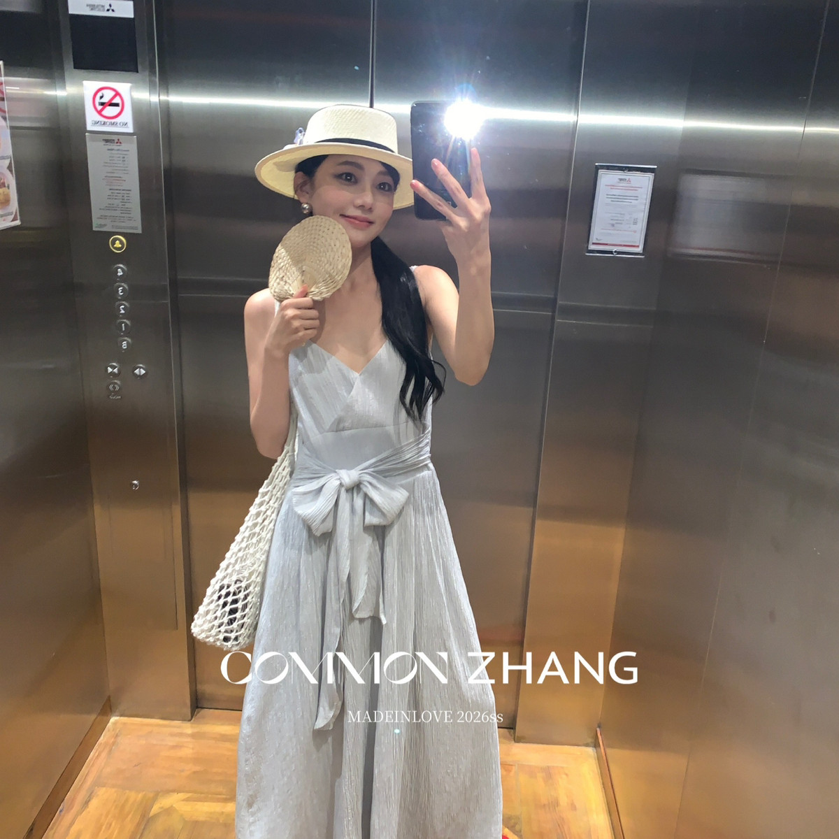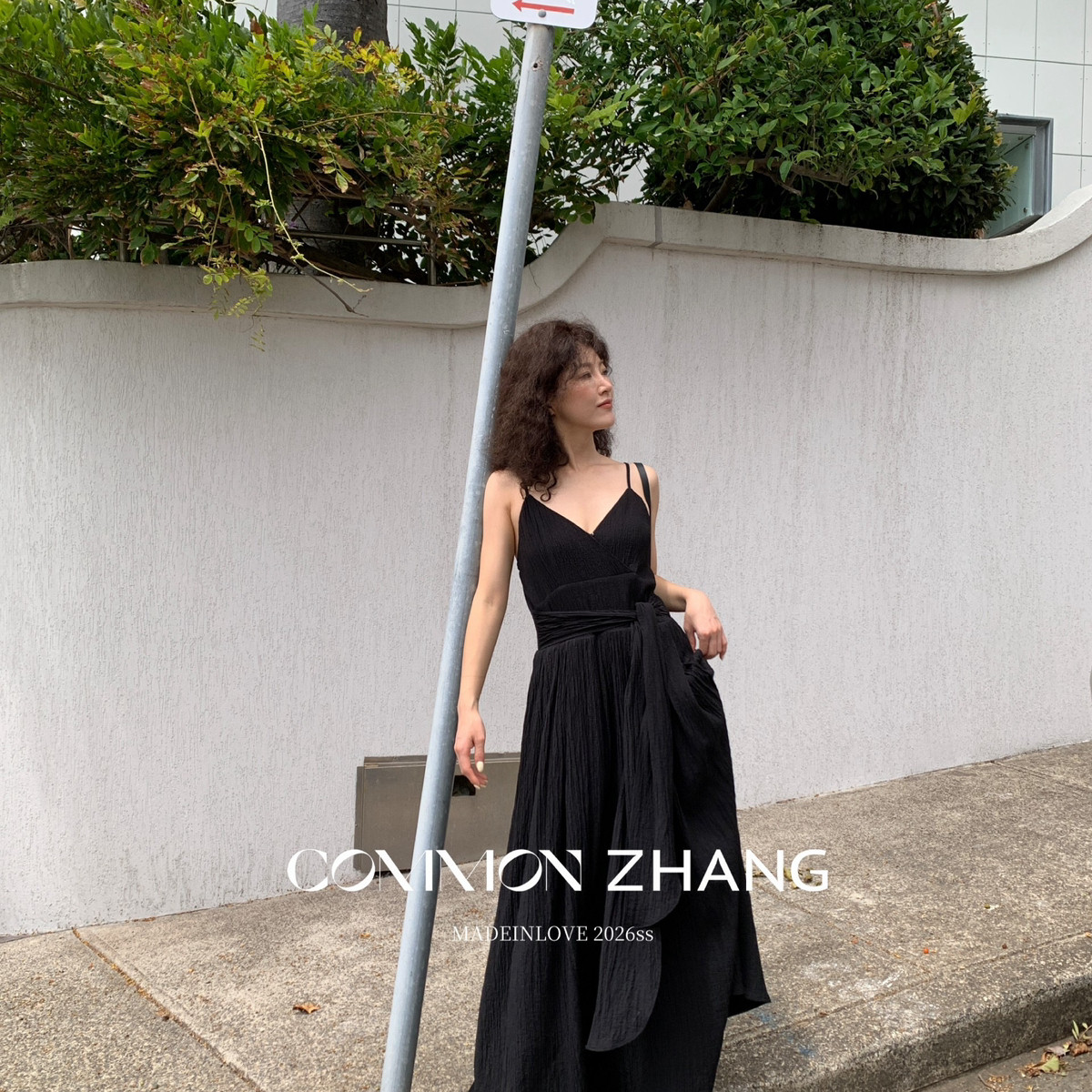 CZ ZHANG-法式优雅纯欲V领蝴蝶结绑带吊带连衣裙