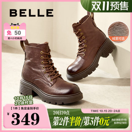 【双11预售】百丽红宝石女靴厚底马丁靴新款冬加绒短靴B2310DD4