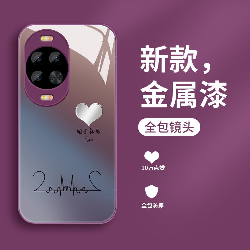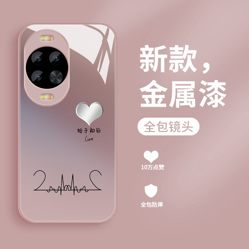 适用华为nova14pro手机壳新款nova14钢化玻璃镜面保护套14ultra镜头全包防摔硬壳14活力版男女情侣款创意爱心
