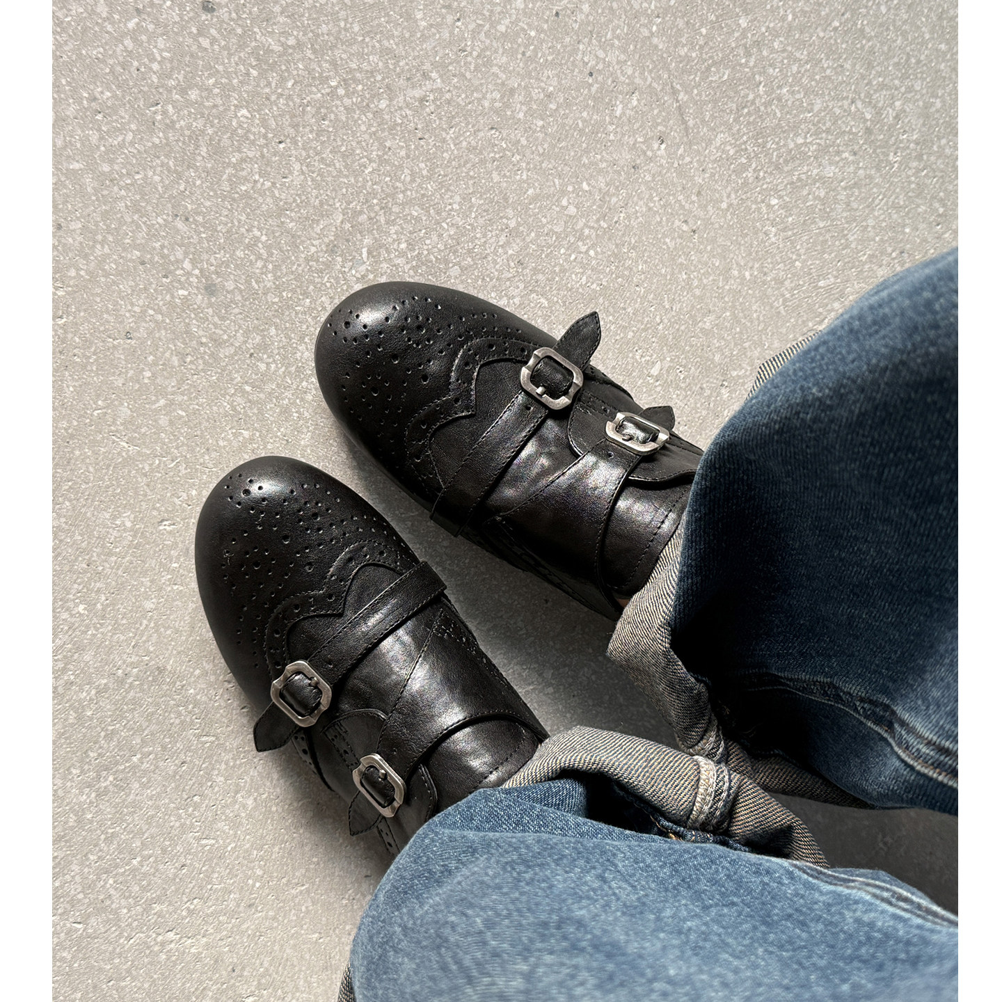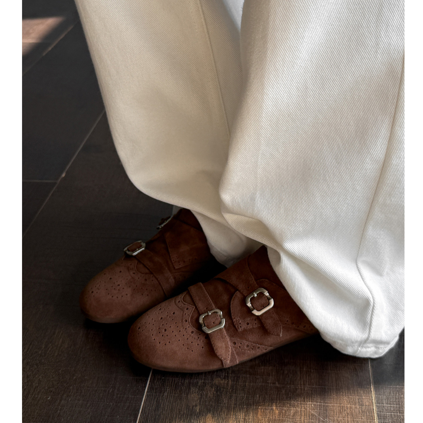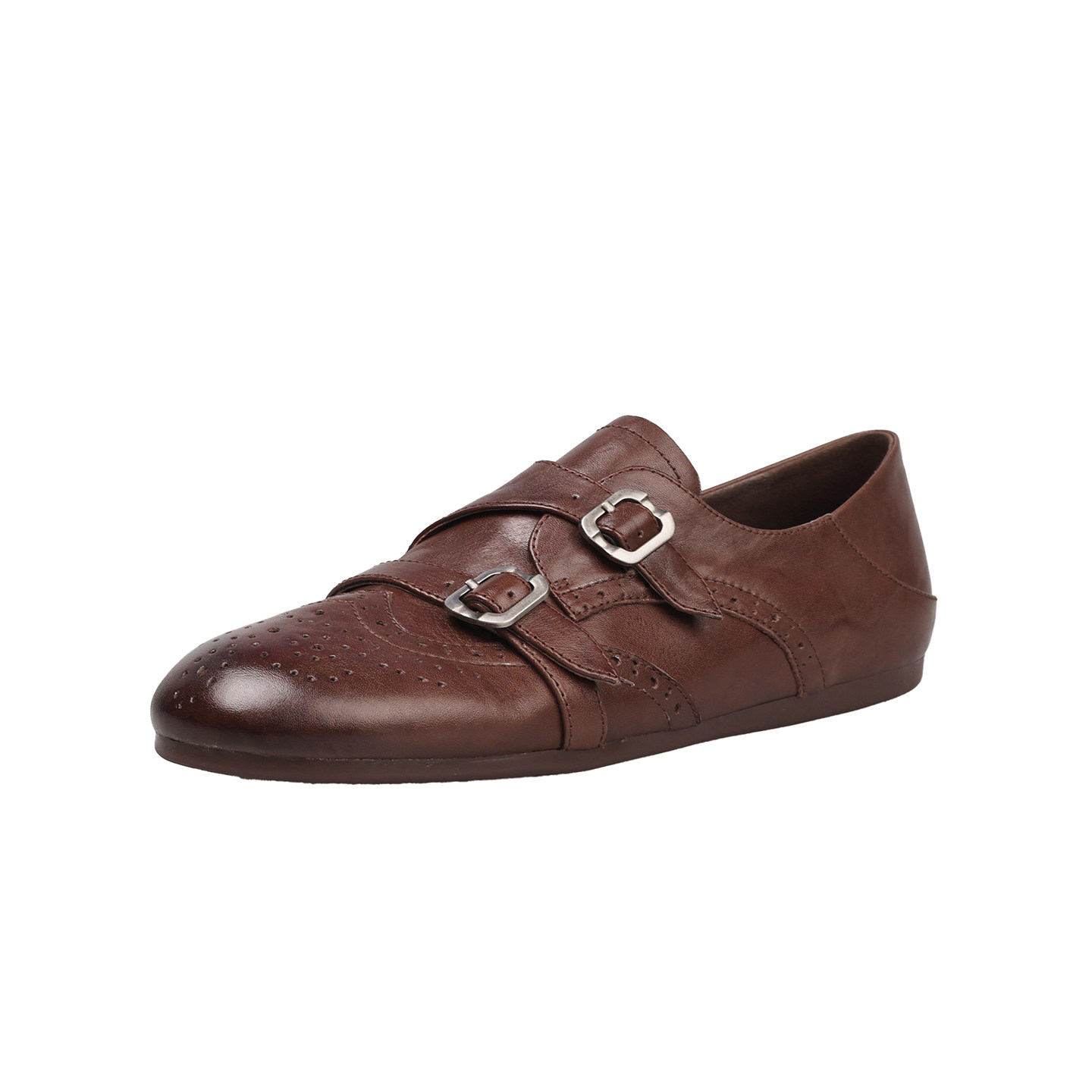 Kmeizu巨软~平底乐福鞋女春新款雕花布洛克小皮鞋英伦风德比单鞋