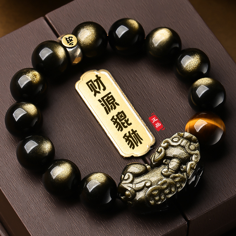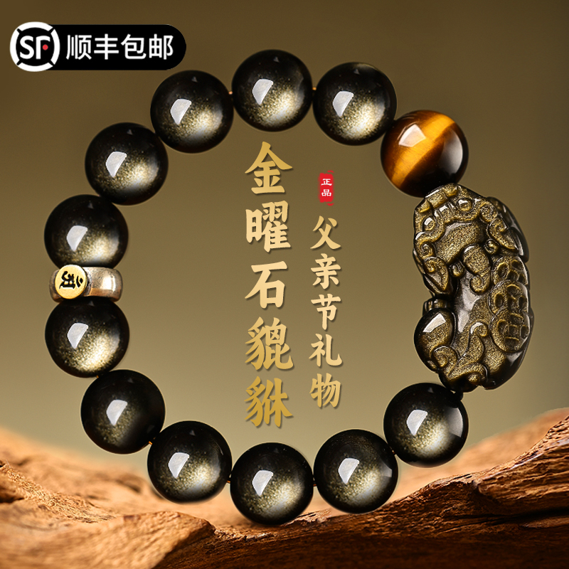 正品金曜石招财貔貅男士手链黑曜石手串男款送男友中秋节礼物2025