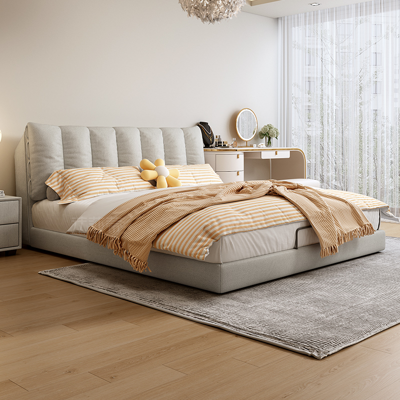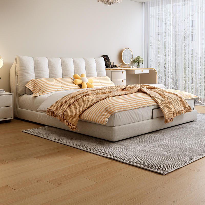 轻奢现代科技布床北欧简约双人主卧大床卧室1.8米网红布艺床