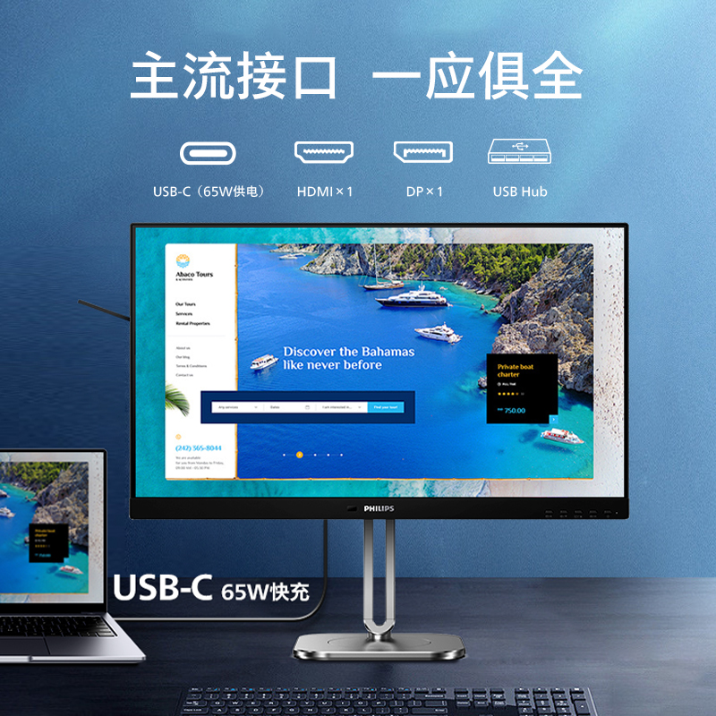飞利浦27英寸2K120Hz显示器无线投屏内置音箱商用屏幕27B2W5600