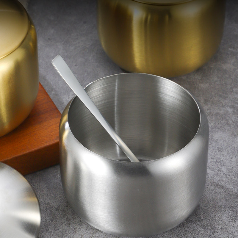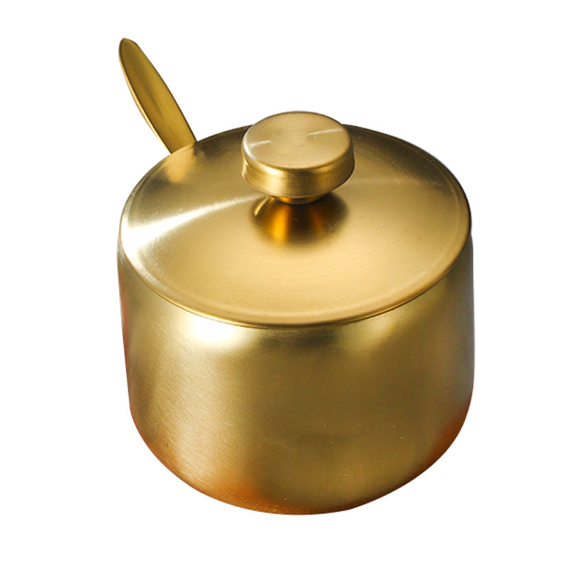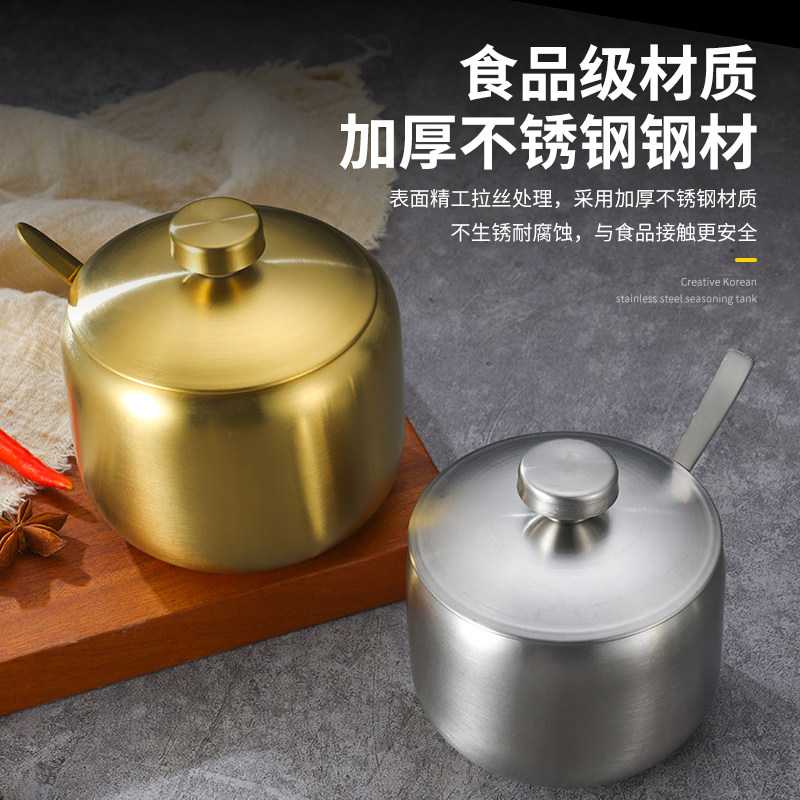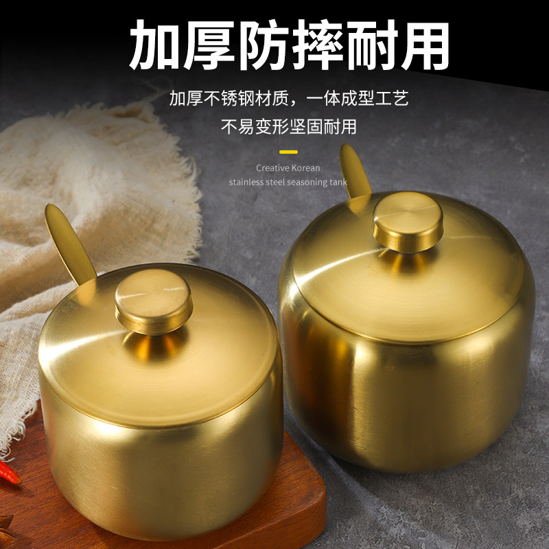 韩式304不锈钢调味瓶罐厨房辣椒酱油罐盐罐带勺调料盒创意金色罐