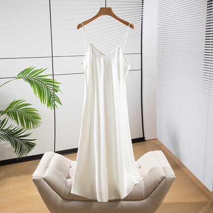 新款斜裁真丝吊带连衣裙女修身百搭内衬中长裙桑蚕丝缎面打底裙夏