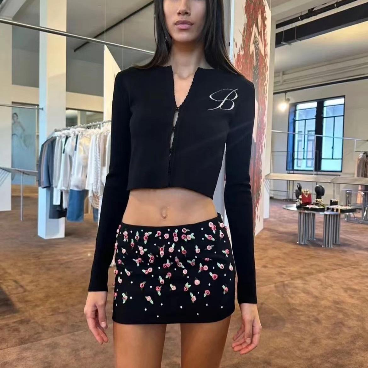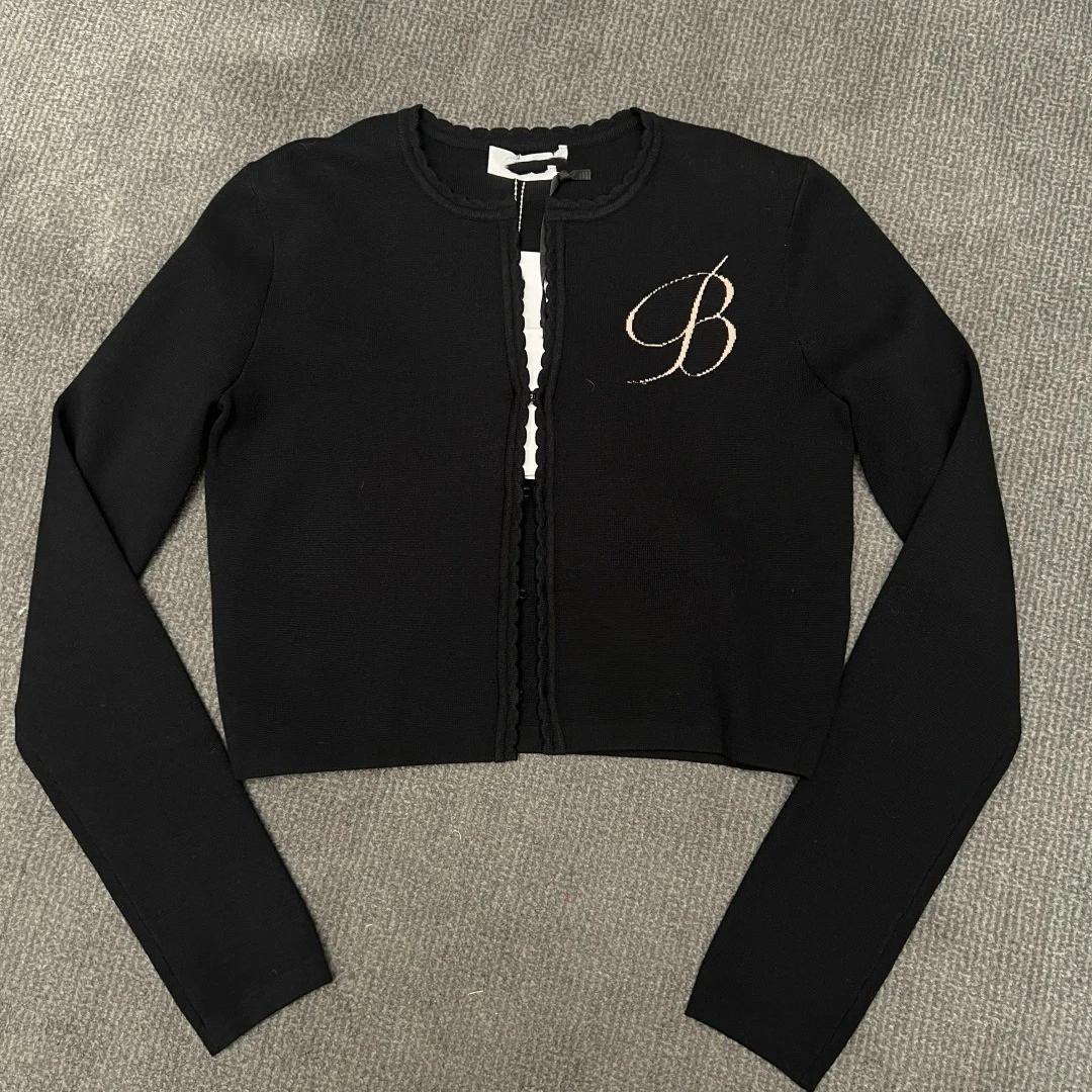 3天*BLUM*RI*E 经典黑色B字logo长袖开衫上衣 高腰短款针织上衣
