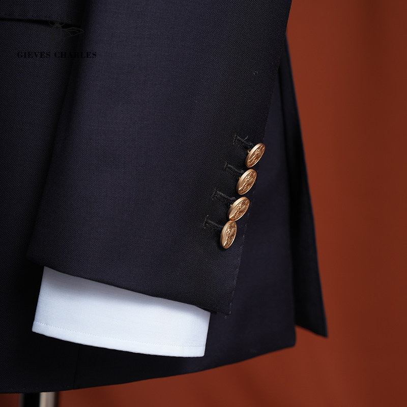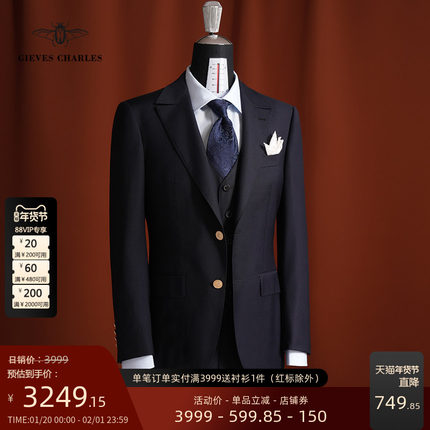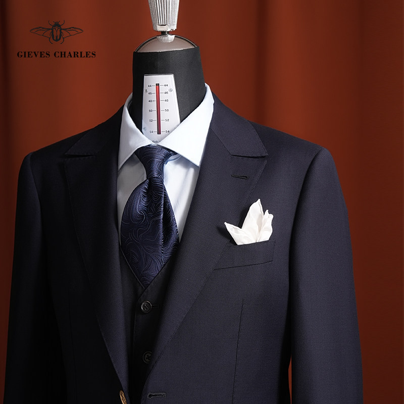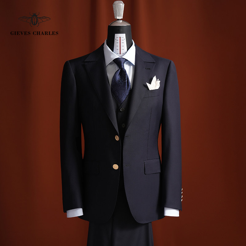 【Tallia】教父限量版三件套藏蓝进口面料商务正装男士西服套装男