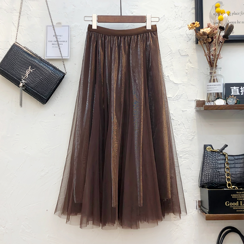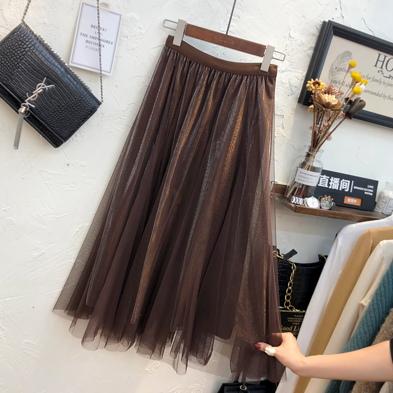 超仙不规则垂感百褶裙高腰网纱裙半身裙女中长款a字仙女裙 2022年